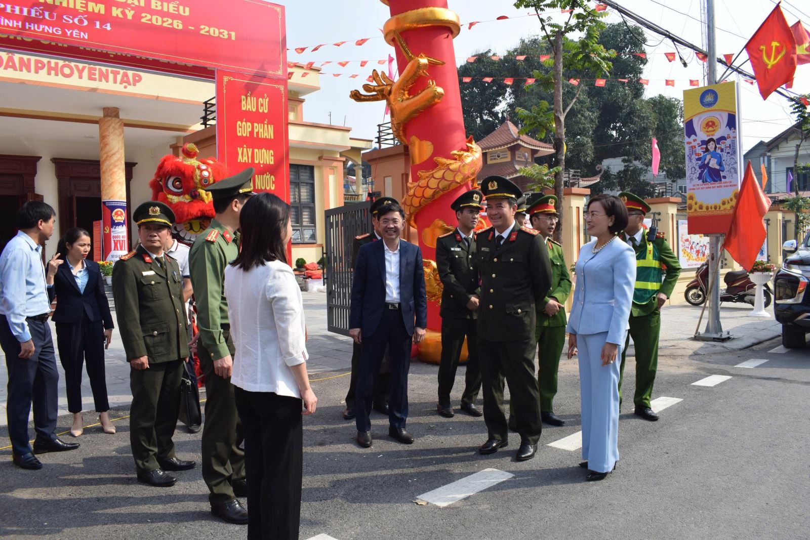 Theo đó, Đồng chí Đại tá Nguyễn Thành Sơn, Phó Bí thư Đảng ủy, Phó Giám đốc Công an tỉnh cùng đoàn công tác đã trực tiếp làm việc tại địa bàn tổ dân phố Thuần Xuyên và tổ dân phố Xuân Bản thuộc phường Đường Hào; tổ dân phố Yên Tập và tổ dân phố Bùi thuộc phường Mỹ Hào; thôn Cao Trai và thôn Kênh Bối thuộc xã Xuân Trúc nhằm đánh giá công tác chuẩn bị các điều kiện cần thiết phục vụ bầu cử, đồng thời ghi nhận thực tế tại các khu vực bỏ phiếu cho thấy, công tác chuẩn bị đã được triển khai đồng bộ, nghiêm túc, đúng quy định, trong đó công tác tuyên truyền cũng được chú trọng, qua đó góp phần tạo không khí phấn khởi, tin tưởng trong Nhân dân.