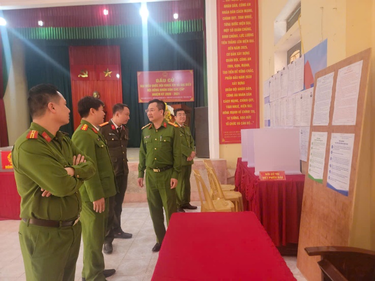 Đoàn công tác của đồng chí Phó Giám đốc Công an tỉnh đã tiến hành kiểm tra thực tế tại một số khu vực dự kiến đặt điểm bỏ phiếu trên địa bàn xã; đánh giá công tác chuẩn bị cơ sở vật chất, phương án bảo vệ, bố trí lực lượng, phương tiện phục vụ nhiệm vụ bảo đảm an ninh, trật tự trong ngày bầu cử. Qua kiểm tra cho thấy, các điểm bỏ phiếu cơ bản đã được chuẩn bị chu đáo, bố trí hợp lý; lực lượng Công an xã đã xây dựng phương án bảo vệ cụ thể đối với từng khu vực bỏ phiếu, chủ động phối hợp với các lực lượng chức năng bảo đảm an ninh, an toàn cho hoạt động bầu cử.