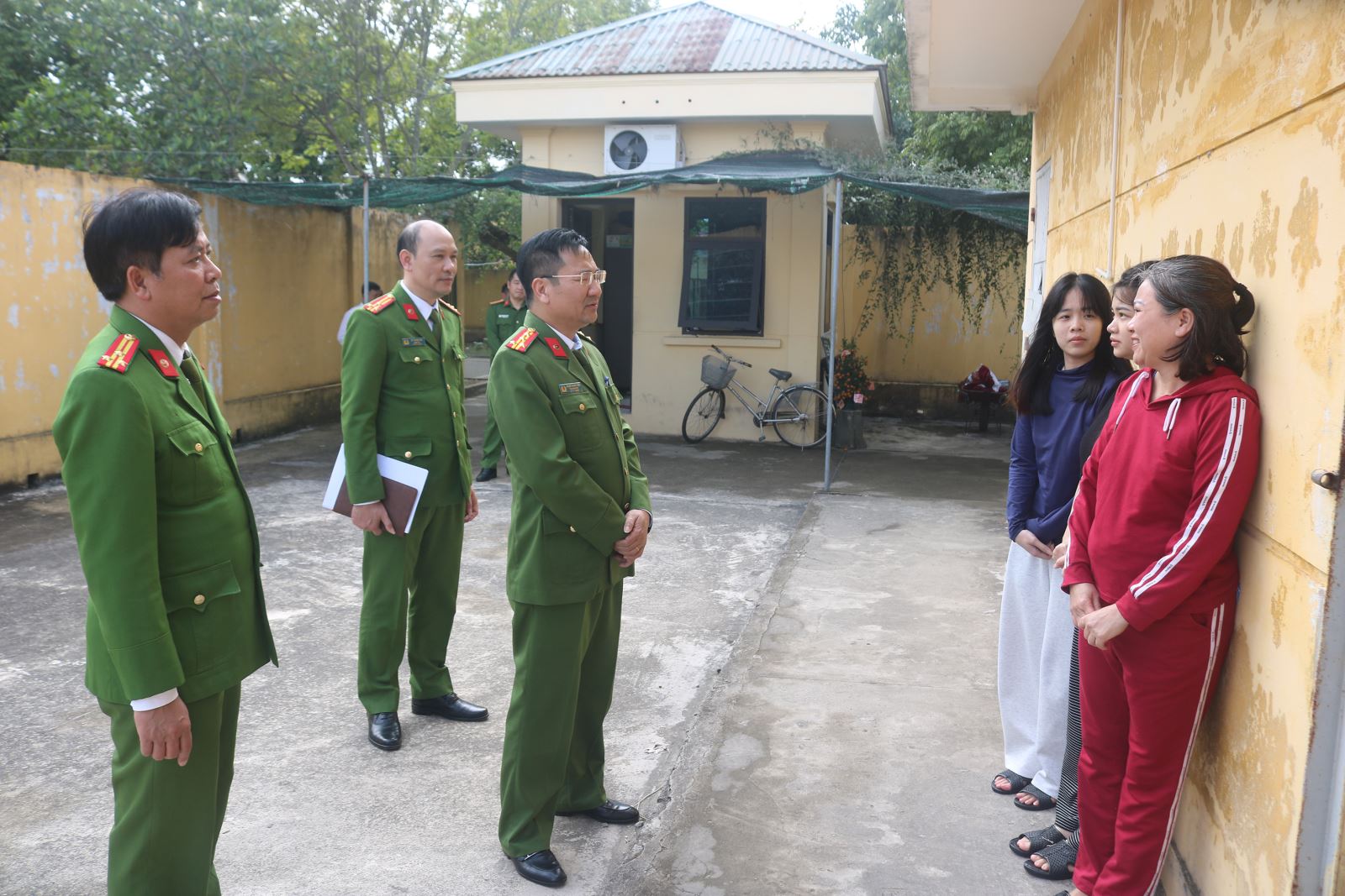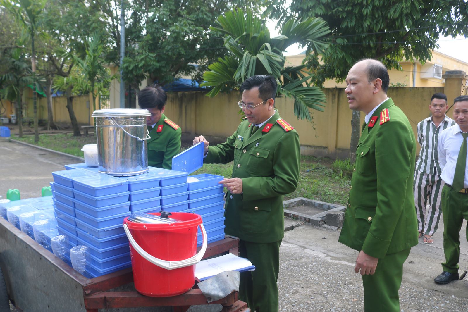 Đồng chí Đại tá Phạm Thanh Tiến – Phó Giám đốc Công an tỉnh cùng đoàn kiểm tra thực tế khẩu phần ăn của can phạm