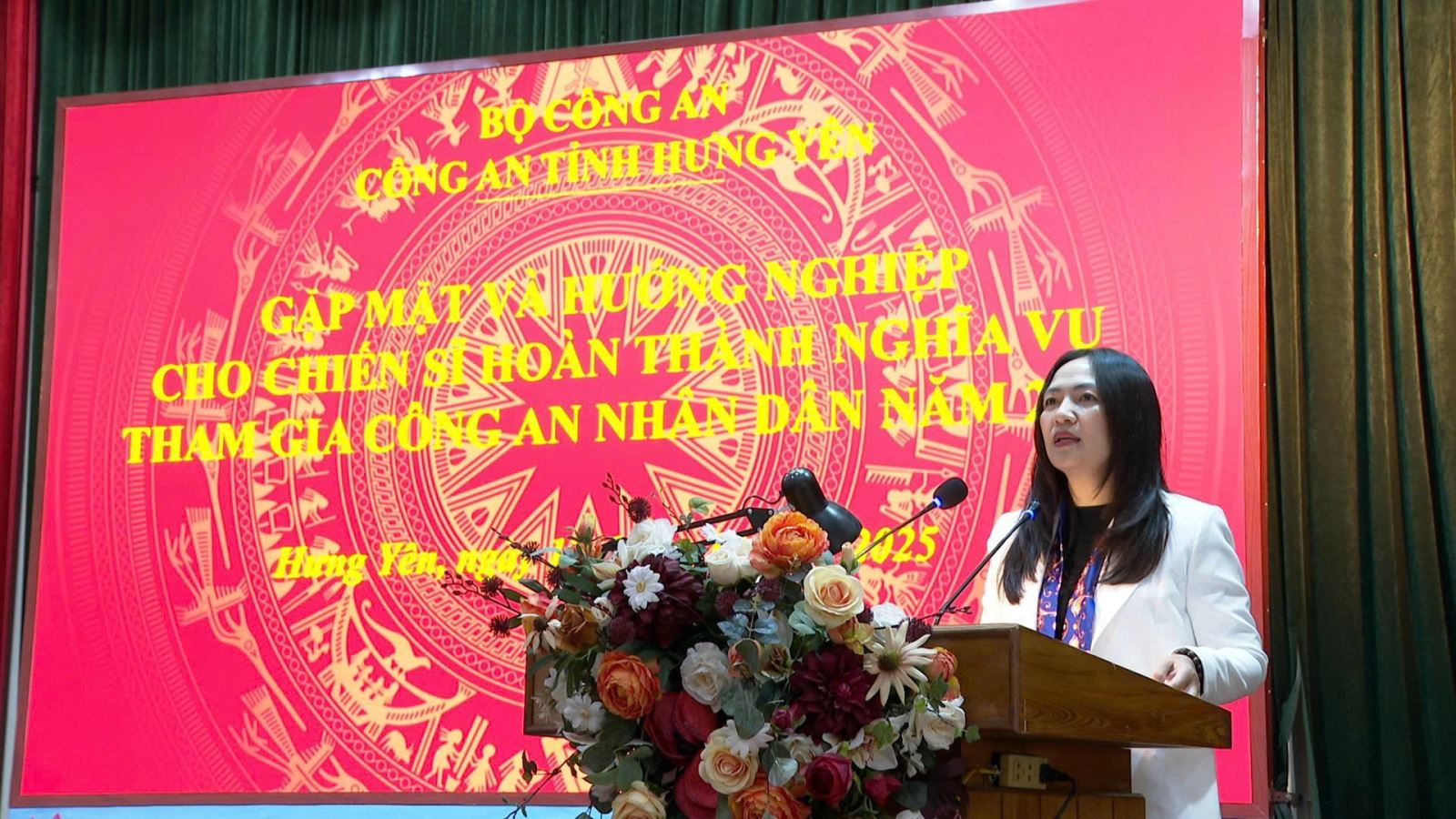 Sáng ngày 10/12/2025, Công an tỉnh tổ chức gặp mặt, hướng nghiệp cho chiến sĩ hoàn thành nghĩa vụ tham gia Công an nhân dân khóa 2024 - 2026. Đại tá Nguyễn Thành Sơn - Phó Bí thư Đảng ủy, Phó Giám đốc Công an tỉnh dự và chỉ đạo buổi gặp mặt. Tham dự còn có đại diện lãnh đạo Trung tâm dịch vụ việc làm tỉnh Hưng Yên và một số Công ty, doanh nghiệp có nhu cầu tuyển lao động trên địa bàn tỉnh và thành phố Hà Nội, đại diện lãnh đạo một số đơn vị nghiệp vụ Công an tỉnh và 342 chiến sỹ hoàn thành nghĩa vụ tham gia Công an nhân dân khóa 2024 - 2026 thuộc Công an tỉnh.