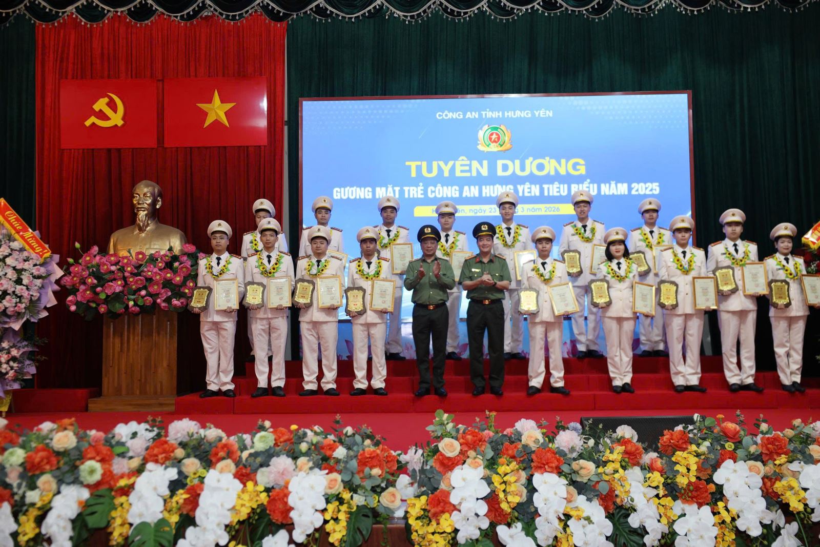 Ngày 23/3/2026, Công an tỉnh Hưng Yên tổ chức gặp mặt kỷ niệm 95 năm Ngày thành lập Đoàn thanh niên cộng sản Hồ Chí Minh (26/3/1931 – 26/3/2026), đối thoại giữa Đảng uỷ, lãnh đạo Công an tỉnh với đoàn viên, thanh niên và tuyên dương gương mặt trẻ Công an Hưng Yên tiêu biểu.