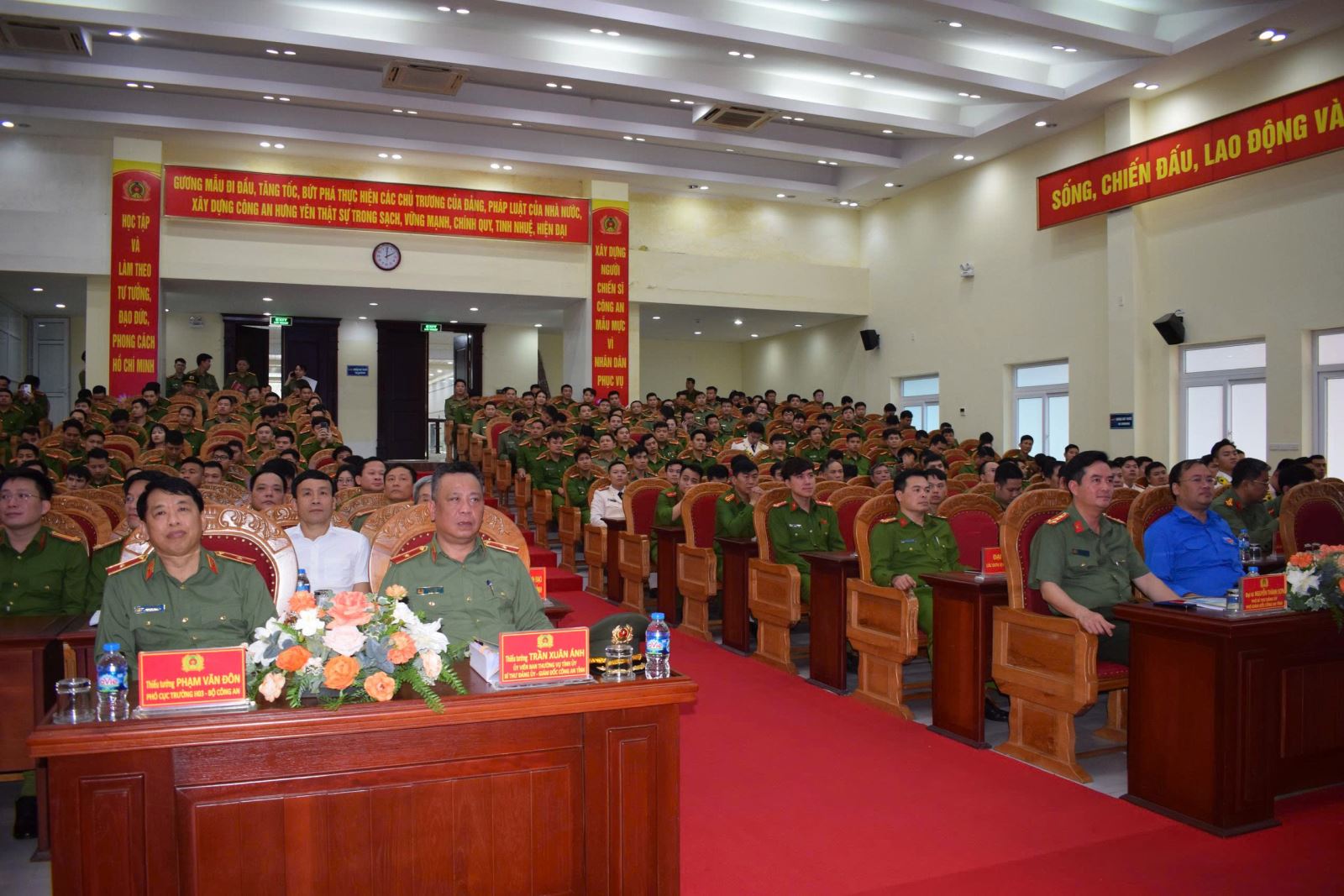 Dự buổi gặp mặt có các đồng chí: Thiếu tướng Trần Xuân Ánh - Ủy viên BTV Tỉnh ủy, Bí thư Đảng ủy, Giám đốc Công an tỉnh; Thiếu Tướng Phạm Văn Đôn - Phó Cục trưởng Cục Trang bị và kho vận - Bộ Công an; Đại tá Nguyễn Thành Sơn – Phó Bí thư Đảng ủy, Phó Giám đốc Công an tỉnh; Thiệu Minh Quỳnh - Ủy viên BCH Trung ương Đoàn, Phó Chủ tịch Ủy ban Mặt trận Tổ quốc Việt Nam tỉnh, Bí thư Tỉnh đoàn; các đồng chí nguyên Bí thư đoàn, Trưởng Ban thanh niên Công an tỉnh qua các thời kỳ; đại diện lãnh đạo các phòng chức năng thuộc Công an tỉnh; chỉ huy Công an các xã, phường; Ban thanh niên, Ban phụ nữ Công an tỉnh; Ban chấp hành các cơ sở đoàn trực thuộc và Bí thư Chi đoàn Công an các xã, phường.