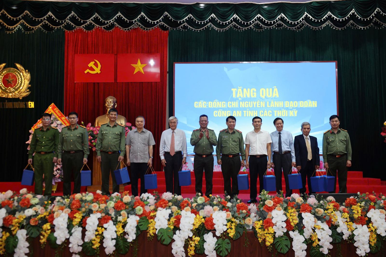Đồng chí Giám đốc Công an tỉnh trao quà tặng các đồng chí nguyên Bí thư Đoàn, Trưởng ban thanh niên Công an tỉnh qua các thời kỳ