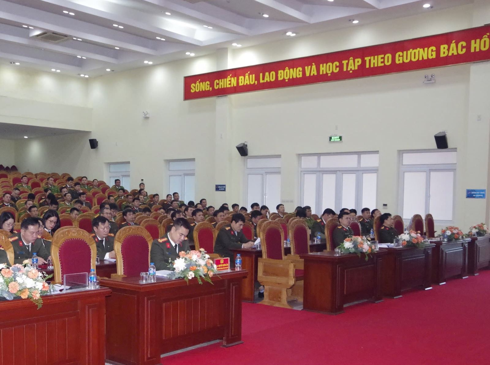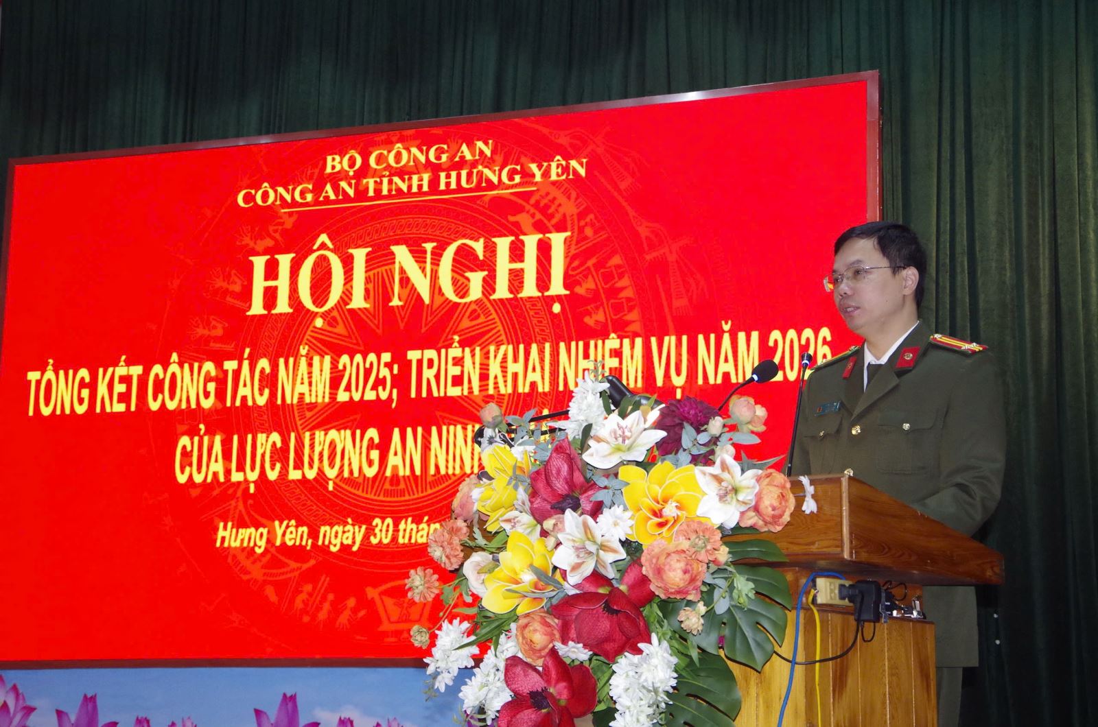 Phát biểu chỉ đạo hội nghị, đồng chí Đại tá Nguyễn Trường Lâm ghi nhận, biểu dương tinh thần trách nhiệm, sự nỗ lực, cố gắng cùng những kết quả, thành tích hệ lực lượng An ninh nhân dân Công an tỉnh đã đạt được trong năm 2025. Đồng chí yêu cầu trong năm 2026 và những năm tiếp theo, lực lượng An ninh nhân dân tiếp tục nâng cao chất lượng công tác dự báo, nắm tình hình; chủ động tham mưu các giải pháp bảo vệ an ninh quốc gia từ sớm, từ xa, từ cơ sở; tăng cường công tác phối hợp, trao đổi thông tin giữa các đơn vị; đẩy mạnh ứng dụng khoa học, công nghệ, chuyển đổi số trên các mặt công tác. Trước mắt là thực hiện thắng lợi các chỉ tiêu, nhiệm vụ được giao trong đợt cao điểm tấn công trấn áp tội phạm, bảo đảm an ninh, trật tự, bảo vệ tuyệt đối an ninh, an toàn Đại hội đại biểu toàn quốc lần thứ XIV của Đảng, bầu cử đại biểu Quốc hội khóa XVI, Hội đồng nhân dân các cấp, nhiệm kỳ 2026 – 2031, Tết nguyên đán Bính Ngọ 2026, các sự kiện lớn của đất nước và các lễ hội đầu năm. Đồng chí đặc biệt nhấn mạnh một số biện pháp, giải pháp nâng cao hiệu quả công tác nghiệp vụ cơ bản của lực lượng An ninh nhân dân. Đồng thời chỉ đạo các đơn vị tiếp tục triển khai phong trào thi đua “Vì An ninh Tổ quốc” với nhiều đổi mới, sáng tạo; đẩy mạnh công tác xây dựng Đảng, xây dựng lực lượng thật sự trong sạch, vững mạnh, chính quy, tinh nhuệ, hiện đại, đáp ứng yêu cầu, nhiệm vụ trong tình hình mới.