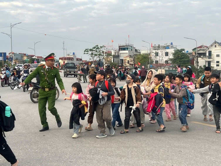 Tuần tra, kiểm soát, đảm bảo trật tự giao thông, trật tự công cộng khu vực Cổng trưởng tiểu học Quảng Châu và khu vực đê Chợ Dầu