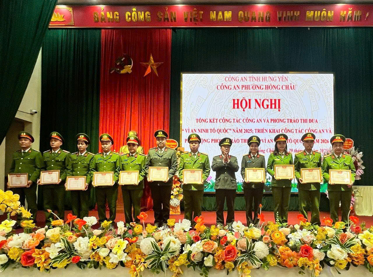 Với những thành tích, kết quả đạt được, năm 2025, Công an phường Hồng Châu đã vinh dự được công nhận là Đơn vị Quyết thắng. Trong năm có 01 đồng chí là điển hình tiên tiến Bộ Công an; 01 đồng chí được Hội phụ nữ Bộ Công an công nhận là phụ nữ Công an cơ sở xuất sắc; nhiều tập thể và cá nhân được Bộ Công an và các cấp khen thưởng. Kết quả trên là nỗ lực, sự đoàn kết, quyết tâm thi đua thực hiện nhiệm vụ của toàn thể Ban lãnh đạo, cán bộ chiến sỹ trong toàn đơn vị.