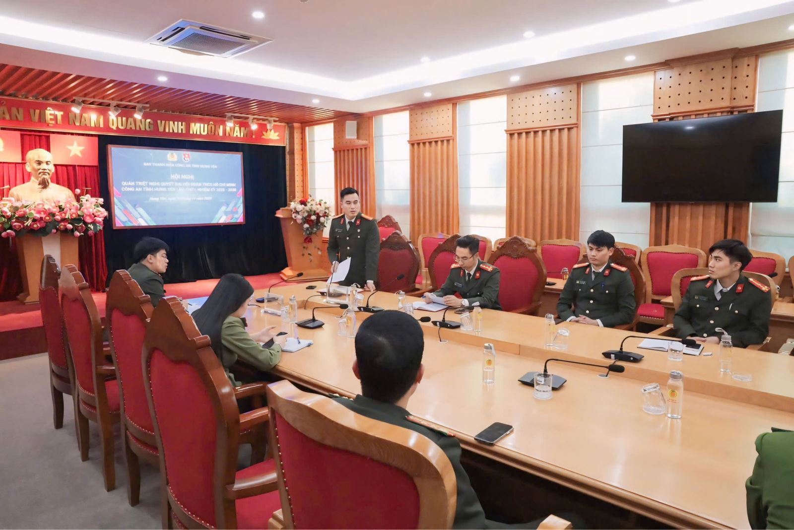Chiều ngày 20/11/2025, Ban Thanh niên Công an tỉnh tổ chức Hội nghị quán triệt Nghị quyết Đại hội Đại biểu Đoàn TNCS Hồ Chí Minh Công an tỉnh lần thứ I, nhiệm kỳ 2025 - 2030; đồng thời tiến hành Hội nghị Ban Thanh niên lần thứ 1 để triển khai Quy chế hoạt động và phân công nhiệm vụ trong Ban Thanh niên nhiệm kỳ mới.