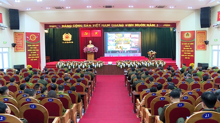 Đồng chí Thiếu tướng Trần Xuân Ánh, Ủy viên Ban Thường vụ Tỉnh ủy, Bí thư Đảng ủy, Giám đốc Công an tỉnh chủ trì Hội nghị tại điểm cầu Công an tỉnh