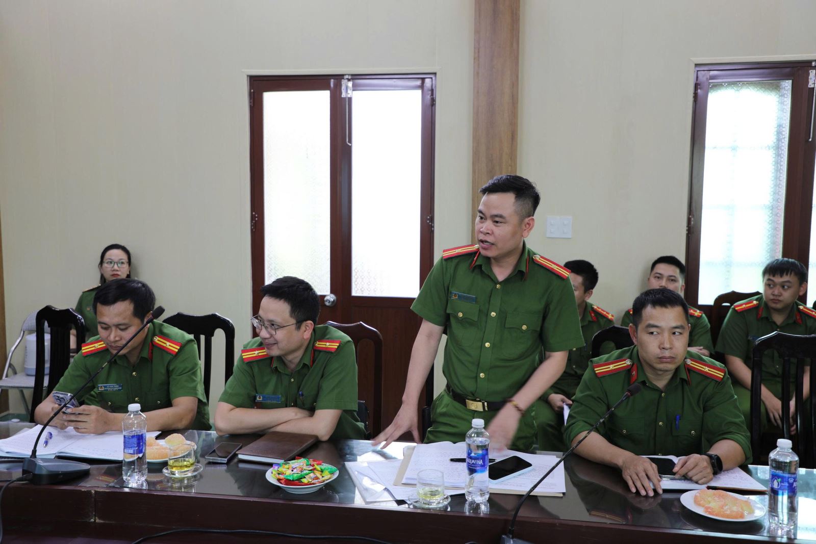 Đại diện lãnh đạo các phòng nghiệp vụ Công an tỉnh phát biểu tại Hội nghị