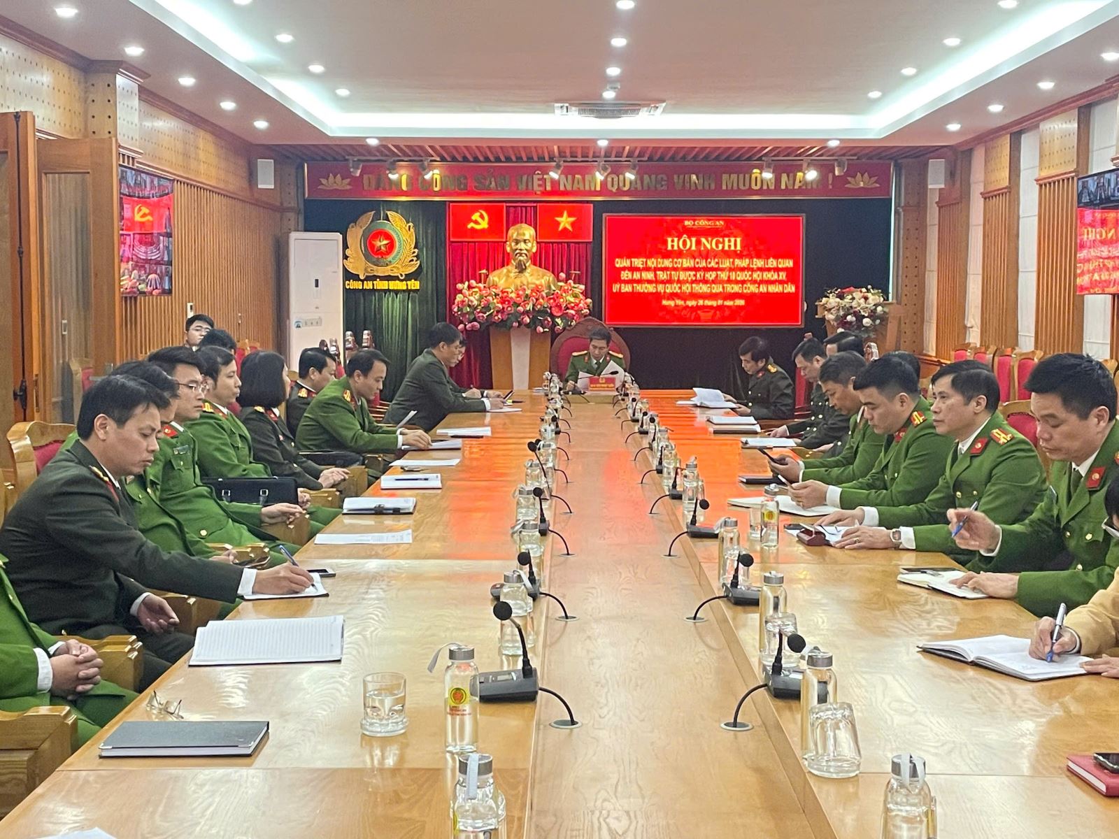 Ngày 26/01/2026, tại Hà Nội, Bộ Công an đã tổ chức Hội nghị quán triệt nội dung cơ bản của các luật, pháp lệnh liên quan đến an ninh, trật tự được Kỳ họp thứ 10, Quốc hội khóa XV, Ủy ban Thường vụ Quốc hội thông qua trong CAND theo hình thức trực tiếp tại hội trường Bộ Công an và trực tuyến đến Công an các đơn vị, địa phương. Đồng chí Thượng tướng Lê Quốc Hùng, Ủy viên Trung ương Đảng, Thứ trưởng Bộ Công an chủ trì hội nghị. Đồng chí Đại tá Cao Minh Tuấn, Phó Giám đốc Công an tỉnh chủ trì tại điểm cầu Công an tỉnh Hưng Yên.