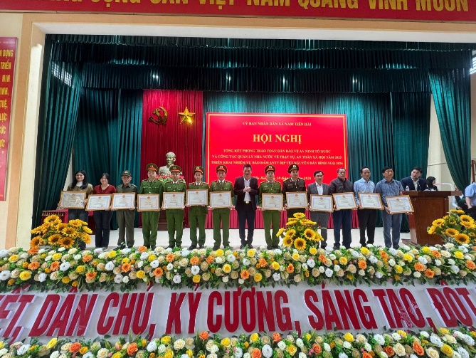Nhân dịp này, UBND xã Nam Tiền Hải đã khen thưởng cho 04 tập thể và 10 cá nhân có thành tích tiêu biểu trong Phong trào Toàn dân bảo vệ an ninh Tổ quốc và công tác bảo đảm ANTT năm 2025, nhằm ghi nhận, động viên và nhân rộng những mô hình, điển hình tiên tiến trong quần chúng nhân dân.