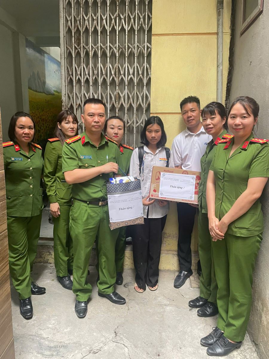 Chỉ huy Công an phường và Ban chấp hành Hội phụ nữ CAP đến thăm hỏi và tặng quà động viên cháu Ngô Thúy Lan – Tổ 15 Tiền Phong, mồ côi cha mẹ cùng một số gia đình các em có hoàn cảnh khó khăn.