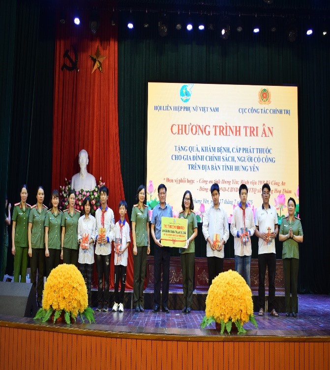 Trong năm 2025, phát huy tinh thần “Vì Nhân dân phục vụ”, Hội Phụ nữ Công an tỉnh Hưng Yên đã tích cực tham mưu Ban Thường vụ Đảng ủy, Giám đốc Công an tỉnh triển khai nhiều hoạt động an sinh xã hội, thiện nguyện hướng về cộng đồng. Các hoạt động được tổ chức thiết thực, hiệu quả, tập trung vào các đối tượng yếu thế, qua đó góp phần lan tỏa hình ảnh đẹp của người nữ chiến sĩ Công an nhân dân gần dân, vì nhân dân phục vụ.