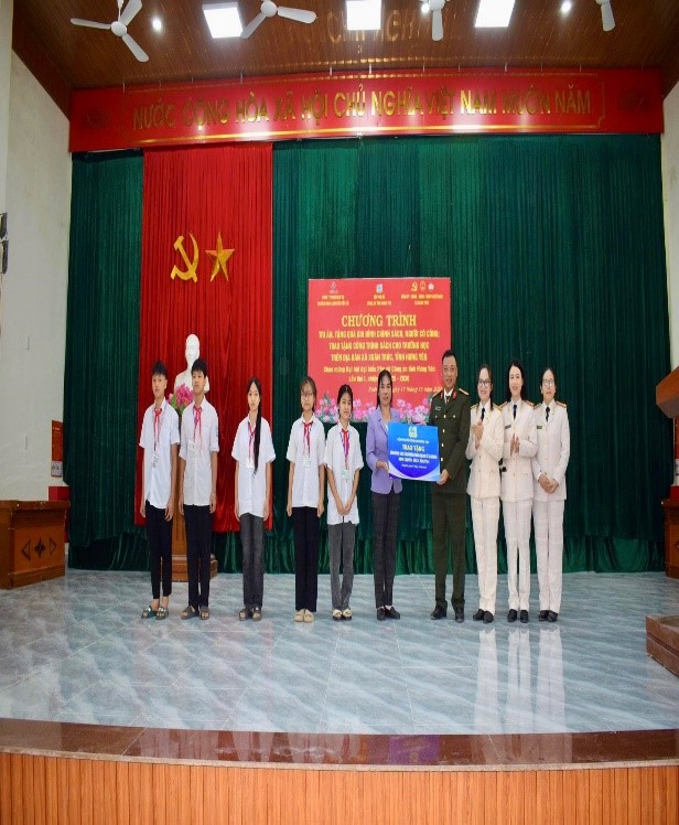 Bên cạnh đó, Hội Phụ nữ Công an tỉnh đã tích cực tổ chức hơn 80 hoạt động nhân đạo, từ thiện, chung tay vì cộng đồng. Tiêu biểu như: Chương trình “Gói bánh chưng xanh - Ấm tình ngày tết” trao tặng gần 300 chiếc bánh chưng cho các gia đình, trẻ em có hoàn cảnh khó khăn, bệnh nhân đang điều trị tại các bệnh viện, trung tâm y tế; chương trình “Nồi cháo nghĩa tình” phát cháo miễn phí tại bệnh viện; chương trình “Sách cho em” trao hơn 600 đầu sách cho học sinh trong và ngoài tỉnh; tặng quà cho 200 trẻ mồ côi, học sinh nghèo vượt khó, phụ nữ có hoàn cảnh khó khăn. Đồng thời, Hội Phụ nữ Công an tỉnh đã huy động nhiều nguồn lực hỗ trợ nhân dân bị thiệt hại do mưa bão, lũ lụt với tổng kinh phí gần 2 tỷ đồng.