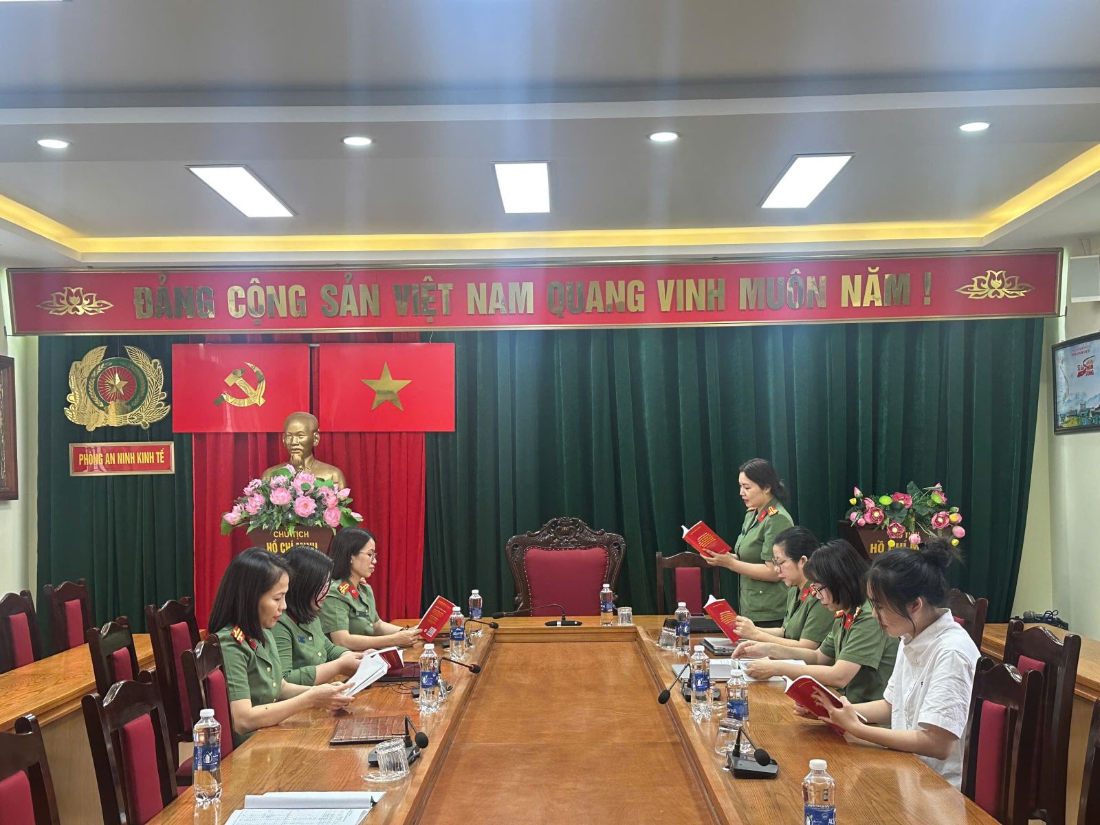 Tại buổi sinh hoạt, các hội viên phụ nữ đã tích cực trao đổi, chia sẻ về vai trò, ý nghĩa của văn hoá đọc trong việc nâng cao trình độ chuyên môn, bản lĩnh chính trị và kỹ năng công tác. Nhiều ý kiến nhấn mạnh, trong bối cảnh yêu cầu nhiệm vụ bảo đảm an ninh kinh tế ngày càng cao, việc chủ động nghiên cứu tài liệu, cập nhật kiến thức pháp luật là yếu tố then chốt giúp mỗi cán bộ, chiến sĩ hoàn thành tốt nhiệm vụ được giao. Việc duy trì thói quen đọc sách, khai thác hiệu quả “Tủ sách pháp luật ANKT” chính là nền tảng để xây dựng đội ngũ cán bộ vừa vững về chuyên môn, vừa sâu về lý luận. Công trình “Tủ sách pháp luật ANKT” được Hội phụ nữ - Chi Đoàn Phòng An ninh kinh tế xây dựng, duy trì và phát huy hiệu quả với hệ thống tài liệu phong phú, đa dạng, tập trung vào các lĩnh vực pháp luật liên quan trực tiếp đến công tác bảo vệ an ninh kinh tế, an ninh, an toàn doanh nghiệp, an ninh tài chính, tiền tệ, đầu tư, thương mại, an ninh giao thông, xây dựng, an ninh nông, lâm, ngư nghiệp... Tủ sách không chỉ phục vụ nhu cầu nghiên cứu, học tập của cán bộ, Đoàn viên, Hội viên mà còn là nguồn tư liệu quan trọng phục vụ công tác tuyên truyền, phổ biến pháp luật tại các cơ quan, doanh nghiệp trên địa bàn.