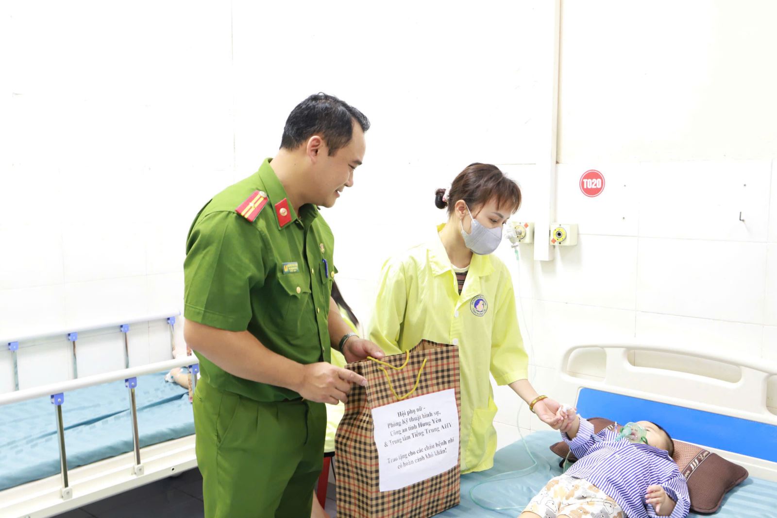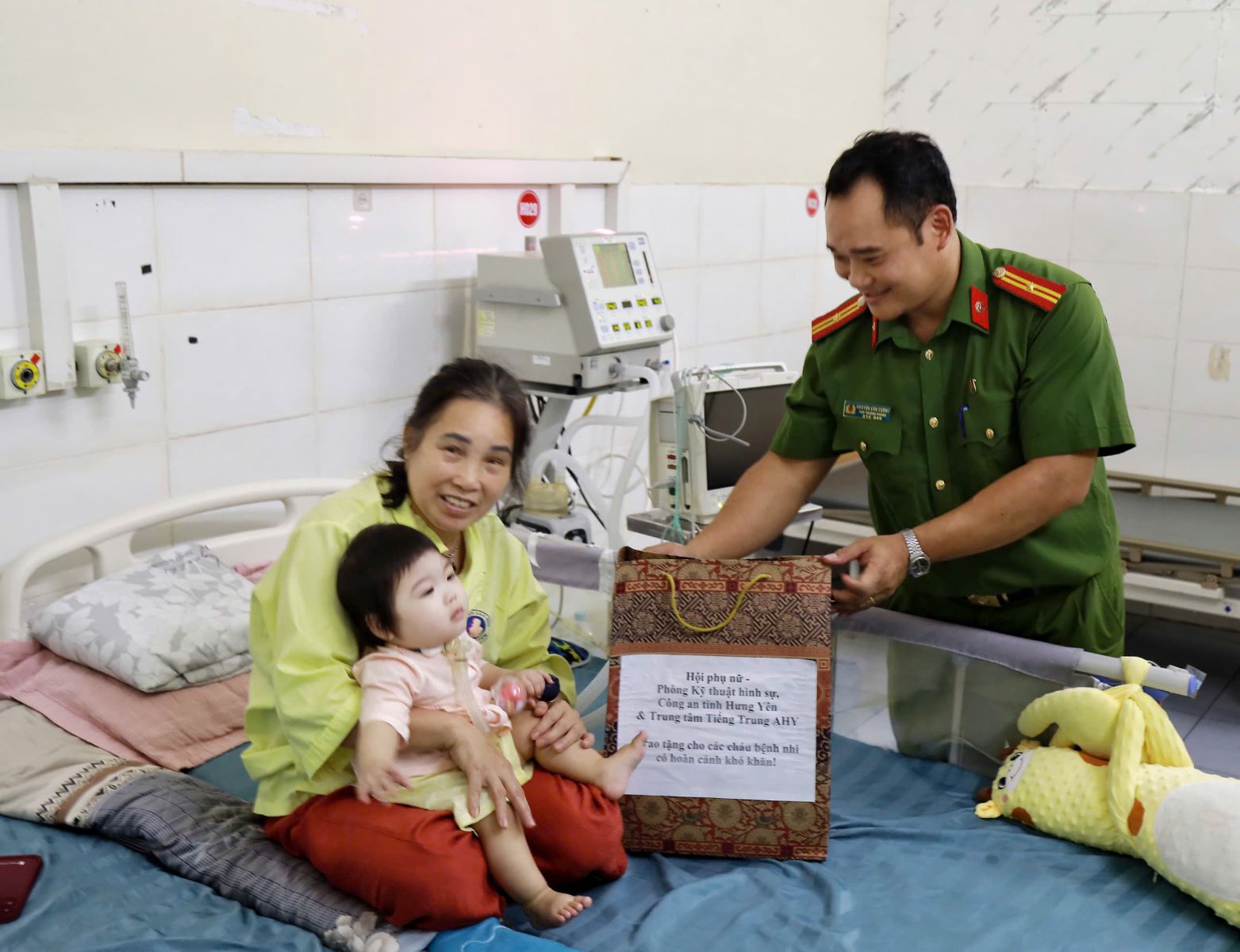 Nhận thức rõ được trách nhiệm với xã hội, Hội phụ nữ Phòng Kỹ thuật hình sự đã tham mưu Ban Thường vụ, Đảng ủy, lãnh đạo phòng phối hợp với Trung tâm Tiếng Trung AHY tổ chức chương trình trao quà cho các bệnh nhi tại đây với 15 suất quà trị giá 500.000 đồng/ suất quà gồm đồ chơi, sữa và tiền mặt. Món quà vật chất tuy nhỏ bé nhưng lại mang theo giá trị tinh thần to lớn, là nguồn cổ vũ, động viên, chia sẻ và là niềm tin muốn gửi gắm tới các bệnh nhi và gia đình bệnh nhân luôn cố gắng vững vàng trong quá trình điều trị của mình, luôn có những tấm lòng, những trái tim luôn sẵn sàng đồng hành, hỗ trợ, mong các em nhỏ sẽ mau khỏi bệnh, trở thành niềm vui cho gia đình, những công dân có ích cho xã hội.