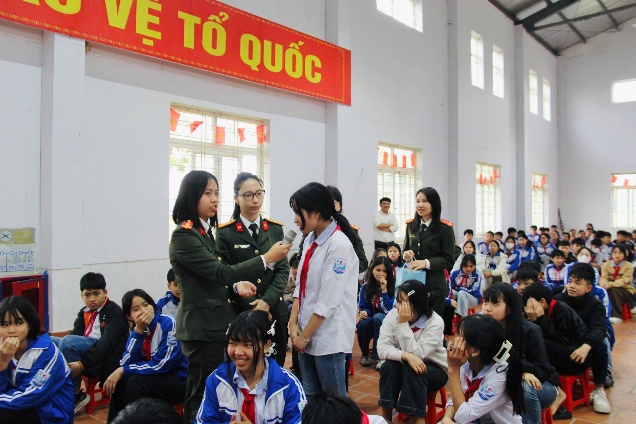 Tại buổi tuyên truyền, Hội phụ nữ Phòng Tham mưu đã vận dụng linh hoạt, sáng tạo những tình huống giả định trên mạng xã hội liên quan hoạt động tội phạm “Bắt cóc online”; từ đó truyền đạt tới toàn thể cán bộ, giáo viên và học sinh của trường những kiến thức cơ bản để nhận biết các thủ đoạn phạm tội trên môi trường mạng. Đưa ra những cảnh báo cơ bản về thông tin cần được kiểm chứng trước khi bấm vào đường link lạ, những lời mời kết bạn từ người “không quen”, từ ngữ các đối tượng thường sử dụng để lôi kéo các đối tượng nhất là các em học sinh đang trong giai đoạn phát triển cả về thể chất, tâm lý, chưa có sự chín chắn, đầy đủ về mặt suy nghĩ, nhận thức, tư duy, thái độ… nên dễ bị ảnh hưởng, học đòi, bắt chước, làm theo những gì không tích cực trên mạng xã hội. Thông qua câu hỏi trực quan, các em học sinh đã có những nhận thức nhất định về vấn đề “Bắt cóc online” đồng thời ghi nhớ, hình thành các thói quen tốt khi tham gia mạng xã hội.