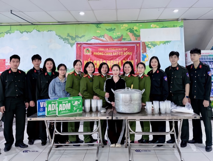 Thực hiện nghiêm túc Kế hoạch số 11/KH-BPN ngày 28/01/2026 của Ban Phụ nữ Công an tỉnh Hưng Yên về Công tác Hội và phong trào phụ nữ năm 2026, sáng ngày 31/01/2026, Hội phụ nữ phối hợp với đoàn viên thanh niên phòng Cảnh sát cơ động tổ chức hoạt động phát cháo thiện nguyện “Nồi cháo nghĩa tình” tại Bệnh viện Nhi Thái Bình, trao những suất cháo, sữa đến bệnh nhi và thân nhân đang điều trị tại bệnh viện.