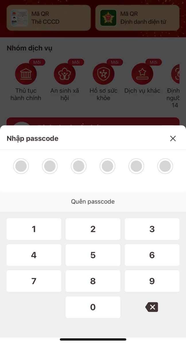 Nhập Passcode gồm 06 chữ số để xác thực.
