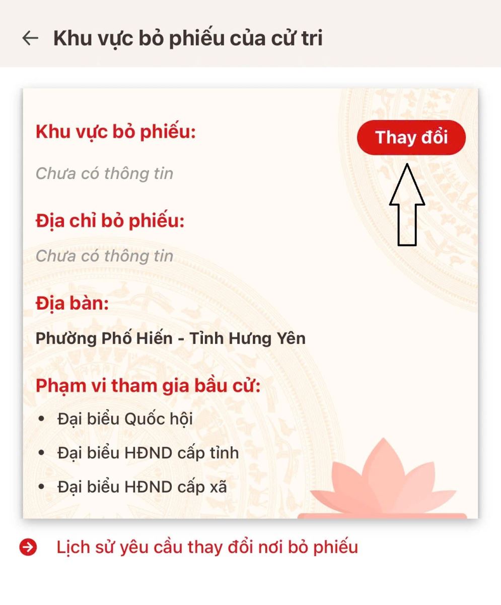 Nếu có nhu cầu thay đổi nơi bỏ phiếu, chọn “Thay đổi”.