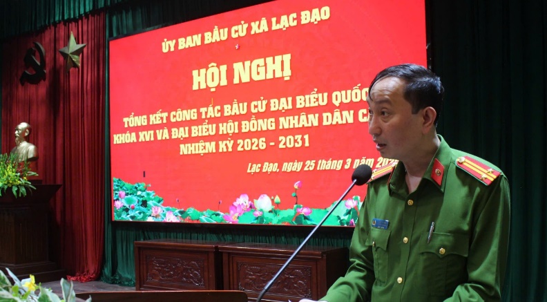 Sáng ngày 25/3/2026, UBND xã Lạc Đạo long trọng tổ chức Hội nghị tổng kết công tác bầu cử đại biểu Quốc hội khóa XVI và đại biểu Hội đồng Nhân dân các cấp nhiệm kỳ 2026- 2031. Trong thời gian diễn ra cuộc bầu cử đại biểu Quốc hội khóa XVI và đại biểu Hội đồng Nhân dân các cấp nhiệm kỳ 2026 - 2031, lực lượng Công an xã Lạc Đạo đã phát huy cao độ tinh thần trách nhiệm, chủ động triển khai toàn diện, đồng bộ các biện pháp công tác, góp phần quan trọng bảo đảm an ninh, trật tự trên địa bàn, tạo điều kiện để cuộc bầu cử diễn ra an toàn, dân chủ, đúng pháp luật.
