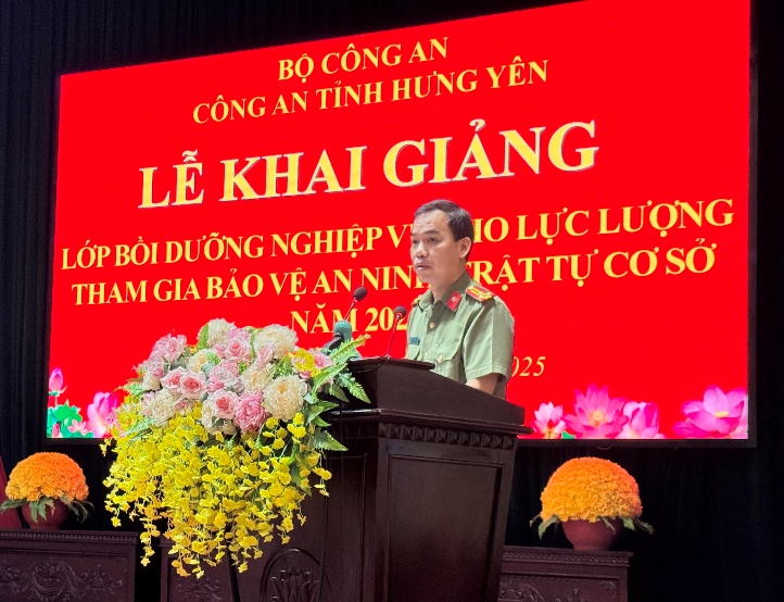 Ngày 06/10/2025, Công an tỉnh Hưng Yên tổ chức Lễ khai giảng lớp bồi dưỡng, tập huấn nghiệp vụ cho lực lượng tham gia bảo vệ an ninh, trật tự ở cơ sở trên địa bàn tỉnh năm 2025.