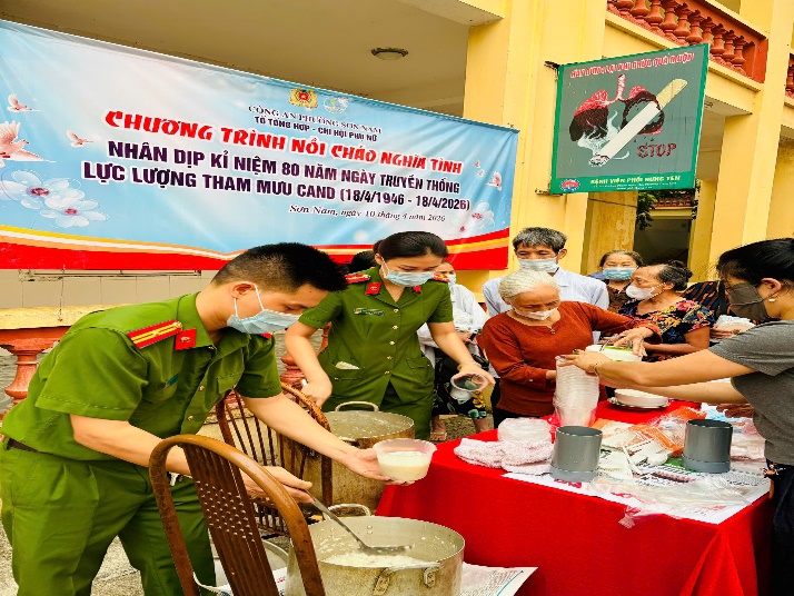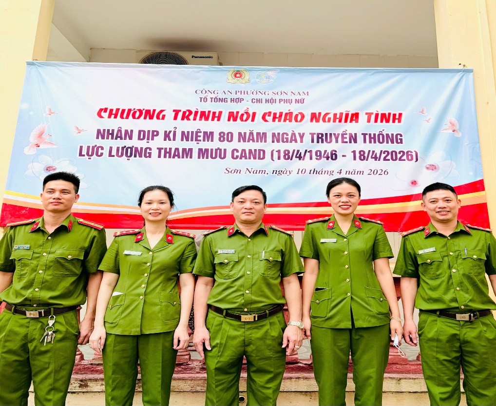 Sáng ngày 10/4/2026, trong không khí thi đua sôi nổi chào mừng kỷ niệm 80 năm Ngày truyền thống lực lượng Tham mưu Công an nhân dân, Chi hội Phụ nữ phối hợp cùng Tổ Tổng hợp - Công an phường Sơn Nam tổ chức chương trình thiện nguyện đầy ý nghĩa mang tên “Nồi cháo nghĩa tình” tại Bệnh viện Phổi Hưng Yên.