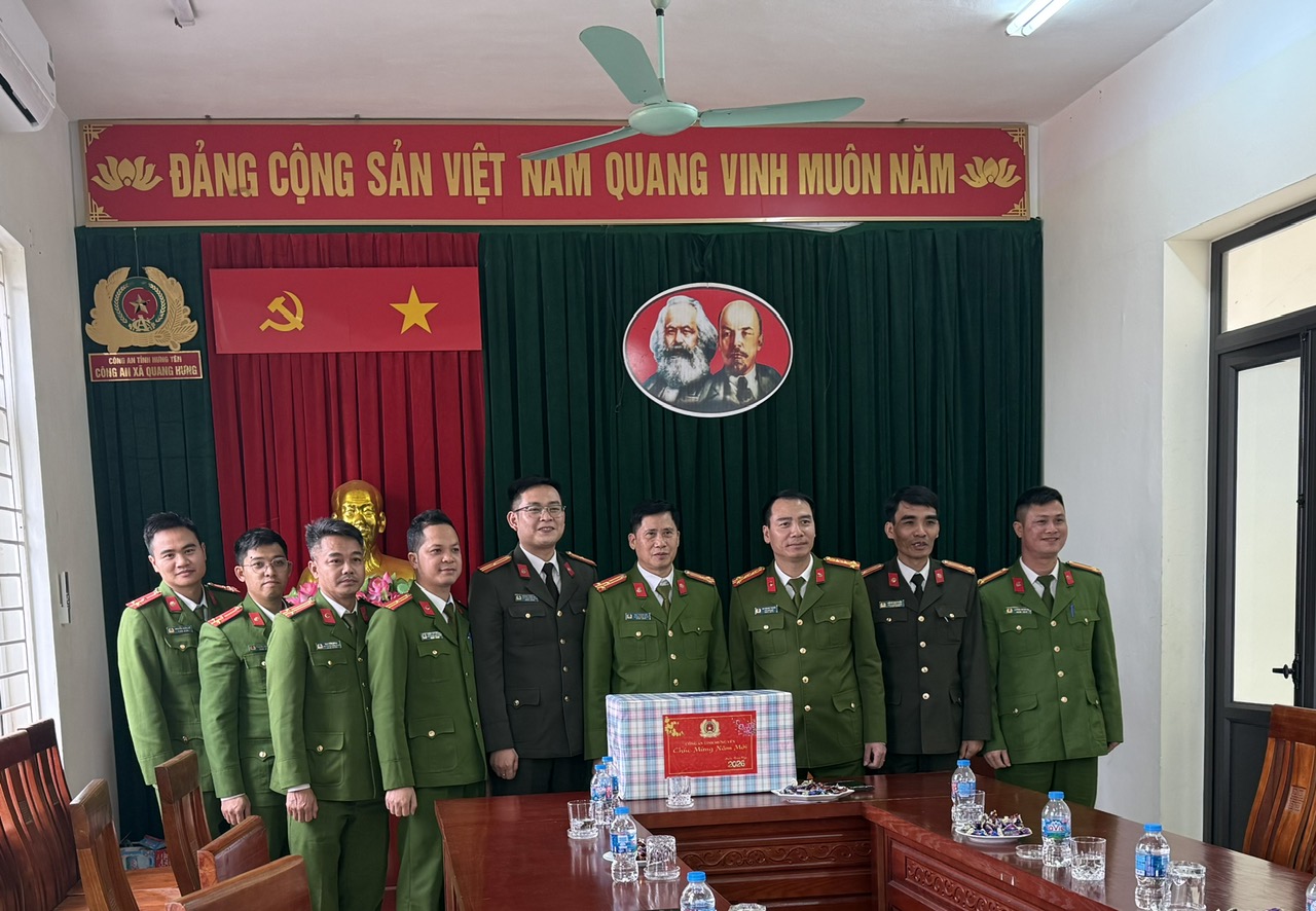 Nhân dịp Tết Nguyên đán cổ truyền của dân tộc, chiều ngày 03/02/2026, Đoàn công tác Công an tỉnh do đồng chí Đại tá Vũ Trung Thành – Phó Giám đốc Công an tỉnh làm Trưởng đoàn đã đến kiểm tra công tác, thăm hỏi, tặng quà, chúc Tết và động viên cán bộ, chiến sĩ Công an xã Quang Hưng.