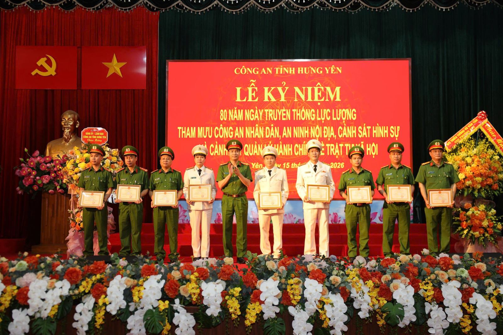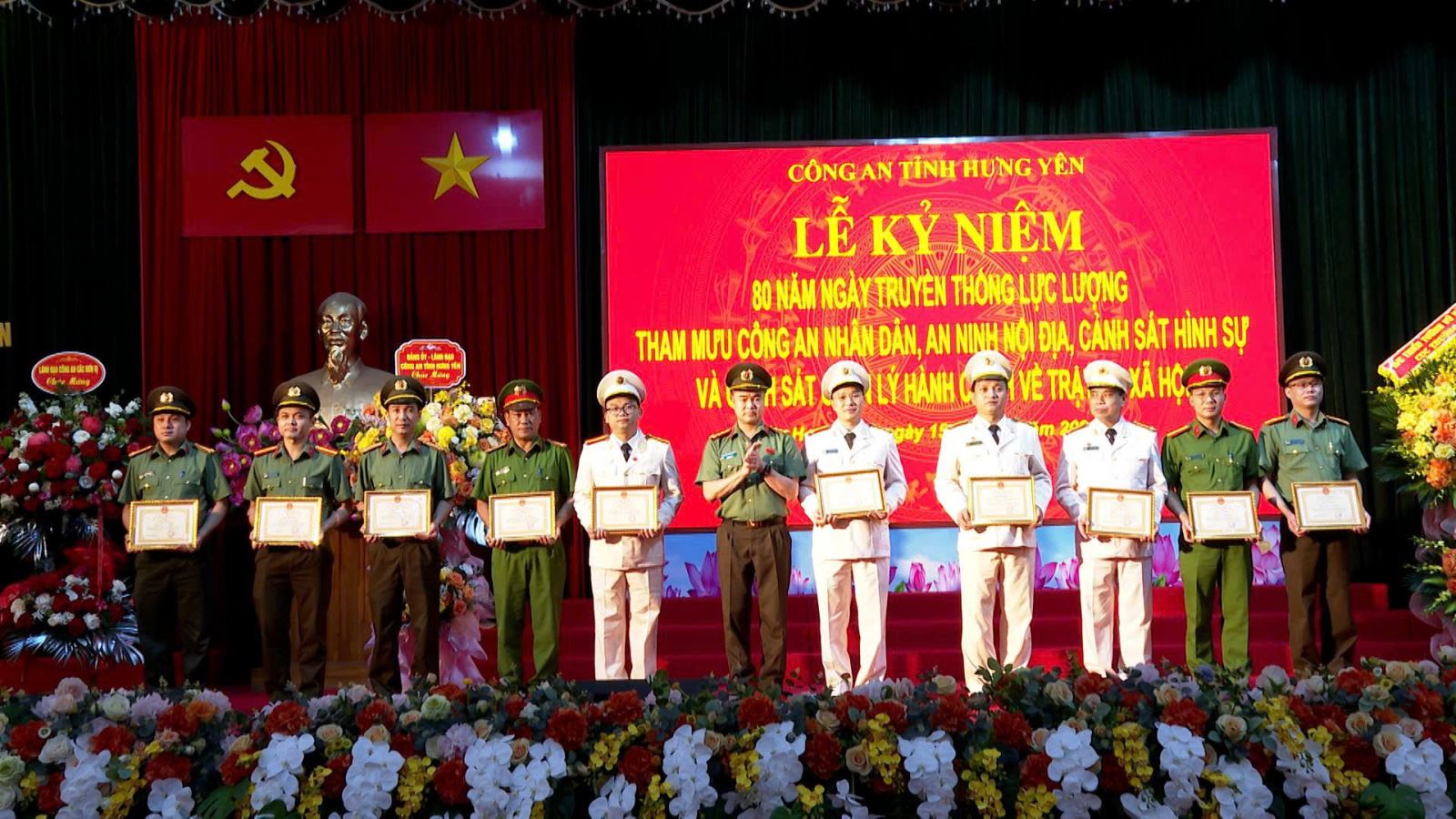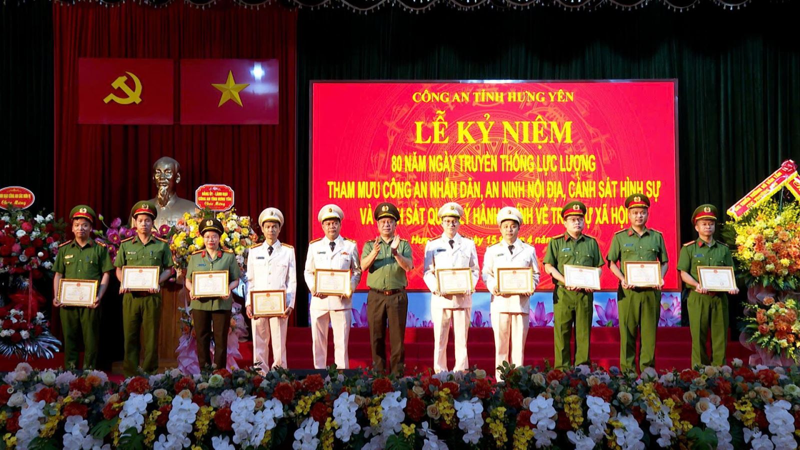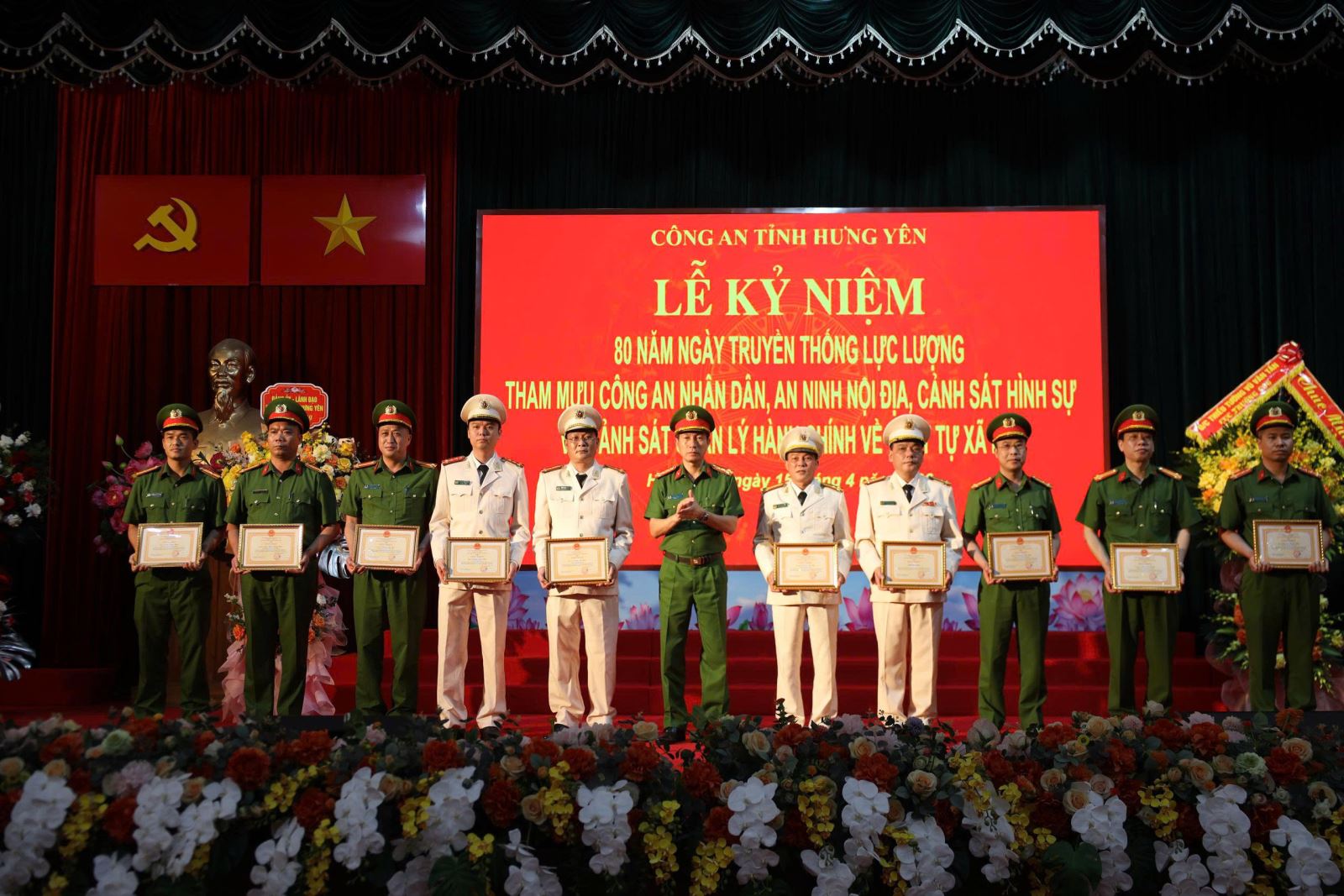 Nhân dịp này, 11 tập thể, 42 cá nhân đạt thành tích xuất sắc trong thực hiện phong trào thi đua kỷ niệm 80 năm ngày truyền thống của bốn lực lượng và thành tích xuất sắc trong tham mưu, tổ chức và đạt giải cao tại 2 cuộc thi tìm hiểu 80 năm ngày truyền thống lực lượng Tham mưu CAND và lực lượng Cảnh sát quản lý hành chính về trật tự xã hội vinh dự được Giám đốc Công an tỉnh tặng Giấy khen.