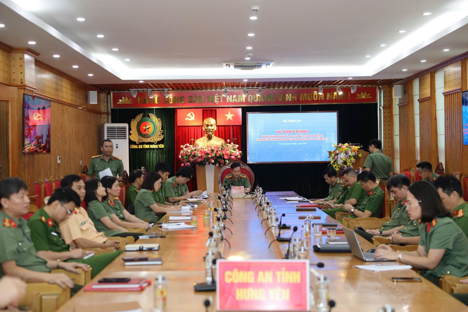 Đồng chí Trung tướng Đặng Hồng Đức, Ủy viên Trung ương Đảng, Thứ trưởng Bộ Công an chủ trì, phát biểu chỉ đạo. Tham dự lễ phát động có đồng chí Huỳnh Thanh Xuân, Phó Chủ tịch Tổng Liên đoàn lao động (LĐLĐ) Việt Nam; đại diện các bộ, ngành Trung ương; đại diện lãnh đạo các Cục trực thuộc Bộ và lãnh đạo Công an các địa phương tại các điểm cầu trên toàn quốc. Lễ phát động được truyền trực tuyến từ điểm cầu Bộ Công an tại Hà Nội đến điểm cầu Công an các địa phương trên toàn quốc. Đồng chí Đại tá Nguyễn Thành Sơn, Phó Bí thư Đảng ủy, Phó Giám đốc Công an tỉnh chủ trì tại điểm cầu Công an tỉnh Hưng Yên.