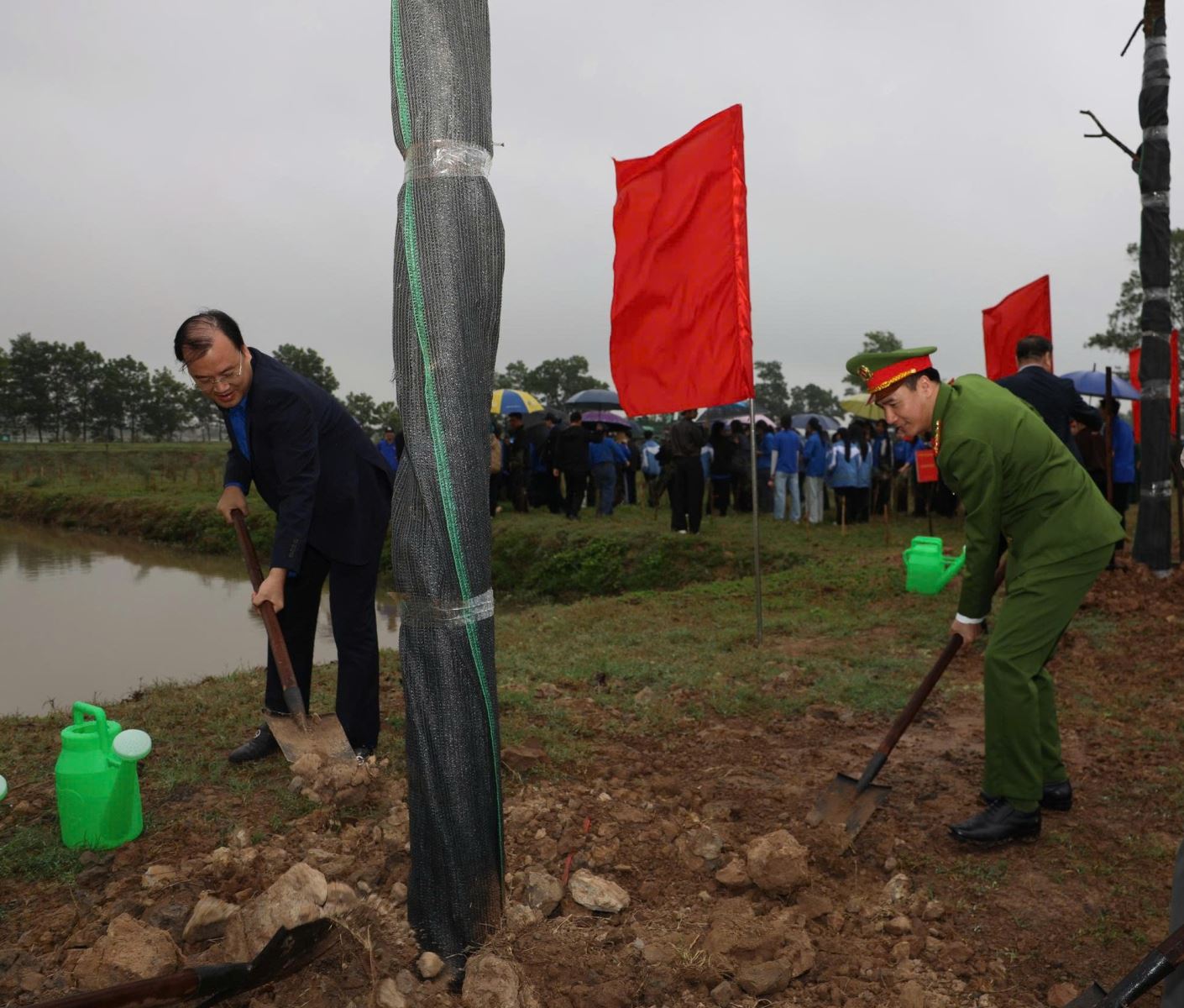 Đồng chí Phó Giám đốc Công an tỉnh cùng các đại biểu trồng cây tại lễ phát động