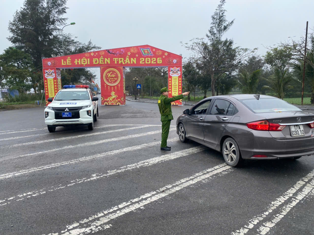 Lực lượng Cảnh sát 113 - Phòng Cảnh sát Quản lý hành chính về trật tự xã hội Công an tỉnh Hưng Yên đã huy động lực lượng, phương tiện, tăng cường quân số, trực tiếp tham gia đảm bảo an ninh trật tự (ANTT) tại lễ hội Đền Trần. Để kịp thời ngăn chặn các hành vi vi phạm pháp luật, lực lượng Cảnh sát 113 đã phối hợp chặt chẽ với Ban quản lý di tích tỉnh Hưng Yên niêm yết công khai số điện thoại khẩn cấp 113 tại các điểm dễ quan sát trong khu di tích để cán bộ, nhân viên và du khách phản ánh các vấn đề liên quan đến ANTT, phối hợp các đơn vị nghiệp vụ Công an tỉnh, Công an xã Long Hưng triển khai tổ công tác chốt chặn tại các khu vực của khu di tích. Đảm bảo dòng người lưu thông thông suốt trên các tuyến đường trong khu di tích, ngăn chặn tình trạng xe cá nhân dừng, đỗ sai quy định gây cản trở lối đi. Tuyên truyền, tăng cường tuần tra cơ động nhằm phát hiện và xử lý kịp thời các hành vi móc túi, trộm cắp, cờ bạc và các hoạt động mê tín dị đoan lợi dụng không gian lễ hội thường trực 24/24 giờ hàng ngày để tiếp nhận và xử lý trực tiếp các thông tin phản ánh của người dân qua đường dây nóng báo đến số máy 113, sẵn sàng can thiệp trong các tình huống phát sinh gây mất trật tự công cộng.