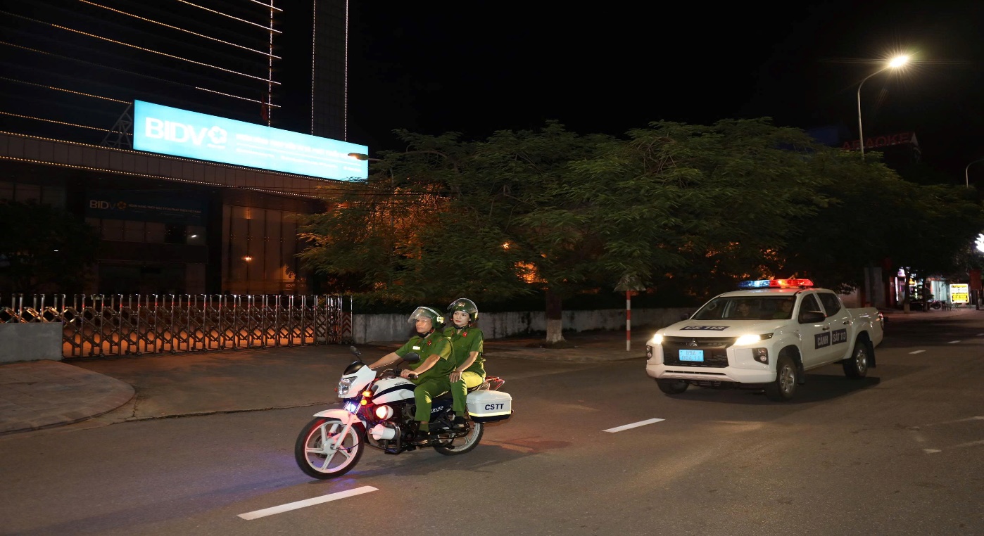 Hình ảnh lực lượng Cảnh sát phản ứng nhanh (113) tuần tra vũ trang tại khu vực đặt trụ sở, tài sản của ngân hàng, tổ chức tín dụng, cơ sở kinh doanh vàng bạc, đá quý, siêu thị.