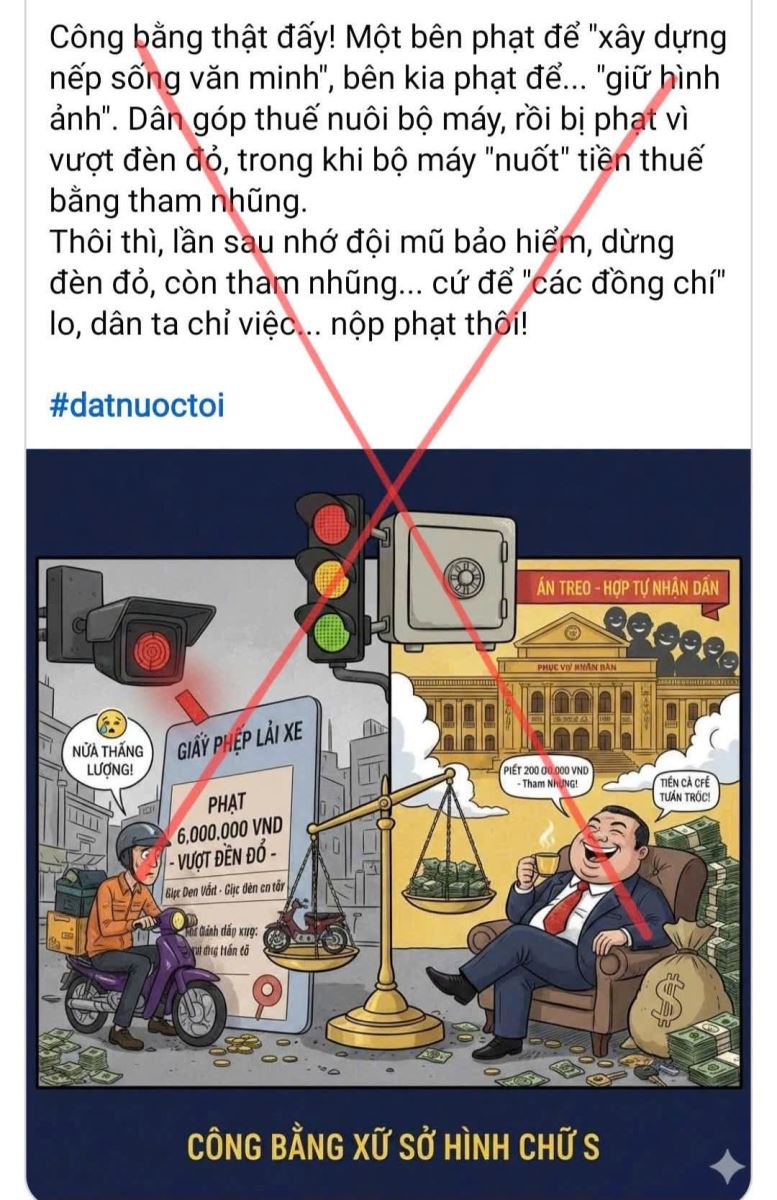 Thời gian gần đây, trên một số nền tảng mạng xã hội xuất hiện bài viết, bình luận cố tình so sánh việc xử phạt vi phạm giao thông với công tác điều tra, truy tố và xét xử các vụ án tham nhũng. Những nội dung này thường đưa ra nhận định mang tính suy diễn rằng pháp luật “nặng với người dân nhưng nhẹ với cán bộ”, từ đó kích động tâm lý bức xúc, tạo cảm giác thiếu công bằng trong thực thi pháp luật. Đây là cách lập luận phiến diện, thiếu cơ sở pháp lý và không phản ánh đúng bản chất của hai lĩnh vực hoàn toàn khác nhau trong hệ thống pháp luật. Thực chất, những so sánh như vậy không nhằm mục đích góp ý xây dựng mà hướng tới gieo rắc sự hoài nghi, làm suy giảm niềm tin của Nhân dân đối với công tác quản lý nhà nước và đấu tranh phòng, chống tham nhũng. Vì vậy, cần nhìn nhận vấn đề một cách toàn diện, dựa trên nguyên tắc thượng tôn pháp luật và thực tiễn sinh động của đời sống xã hội.