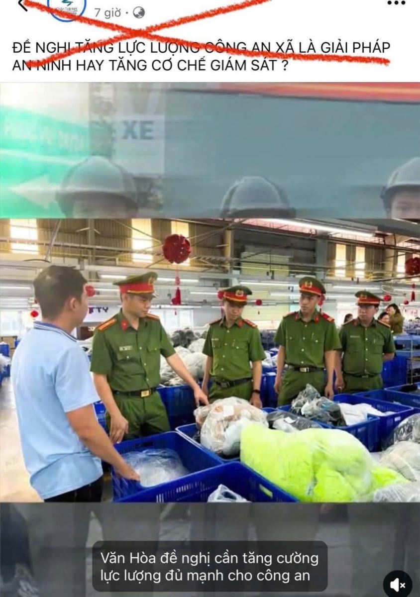 Trong thời gian gần đây, trên một số nền tảng mạng xã hội xuất hiện những hình ảnh và bài viết lợi dụng phát biểu, kiến nghị của đại biểu Quốc hội liên quan đến việc tăng cường lực lượng Công an cấp cơ sở để suy diễn, bóp méo bản chất vấn đề. Đặc biệt, thông qua việc cắt ghép hình ảnh lực lượng Công an đang thực hiện nhiệm vụ kiểm tra, giám sát tại cơ sở sản xuất, kinh doanh, một số ý kiến đã cố tình đặt ra câu hỏi mang tính đánh tráo khái niệm như: “Tăng lực lượng Công an xã là để bảo đảm an ninh hay để kiểm soát người dân?”, từ đó gây hoài nghi, làm suy giảm niềm tin của quần chúng Nhân dân đối với chủ trương đúng đắn của Đảng và Nhà nước. Những cách đặt vấn đề như vậy là phiến diện, thiếu cơ sở thực tiễn và không phản ánh đúng bản chất của kiến nghị.