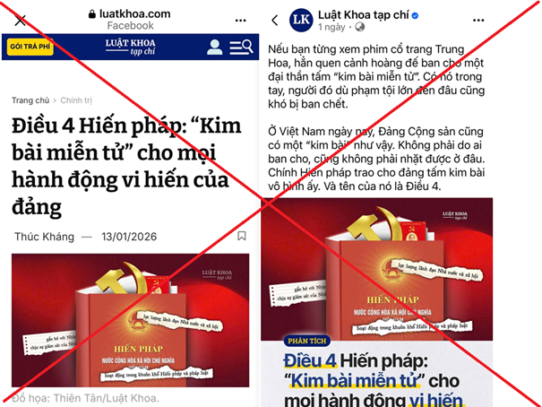 Luận điệu Điều 4 Hiến pháp là “kim bài miễn tử” cho mọi hành động vi hiến của Đảng là một sự xuyên tạc nghiêm trọng về bản chất pháp lý và hiện thực chính trị tại Việt Nam. Đây là luận điệu nhằm bóp méo sự thật, phá hoại niềm tin của Nhân dân vào hệ thống pháp luật, phủ nhận vai trò, giảm uy tín của Đảng trước và trong thời điểm diễn ra Đại hội đại biểu toàn quốc lần thứ XIV của Đảng Cộng sản Việt Nam.