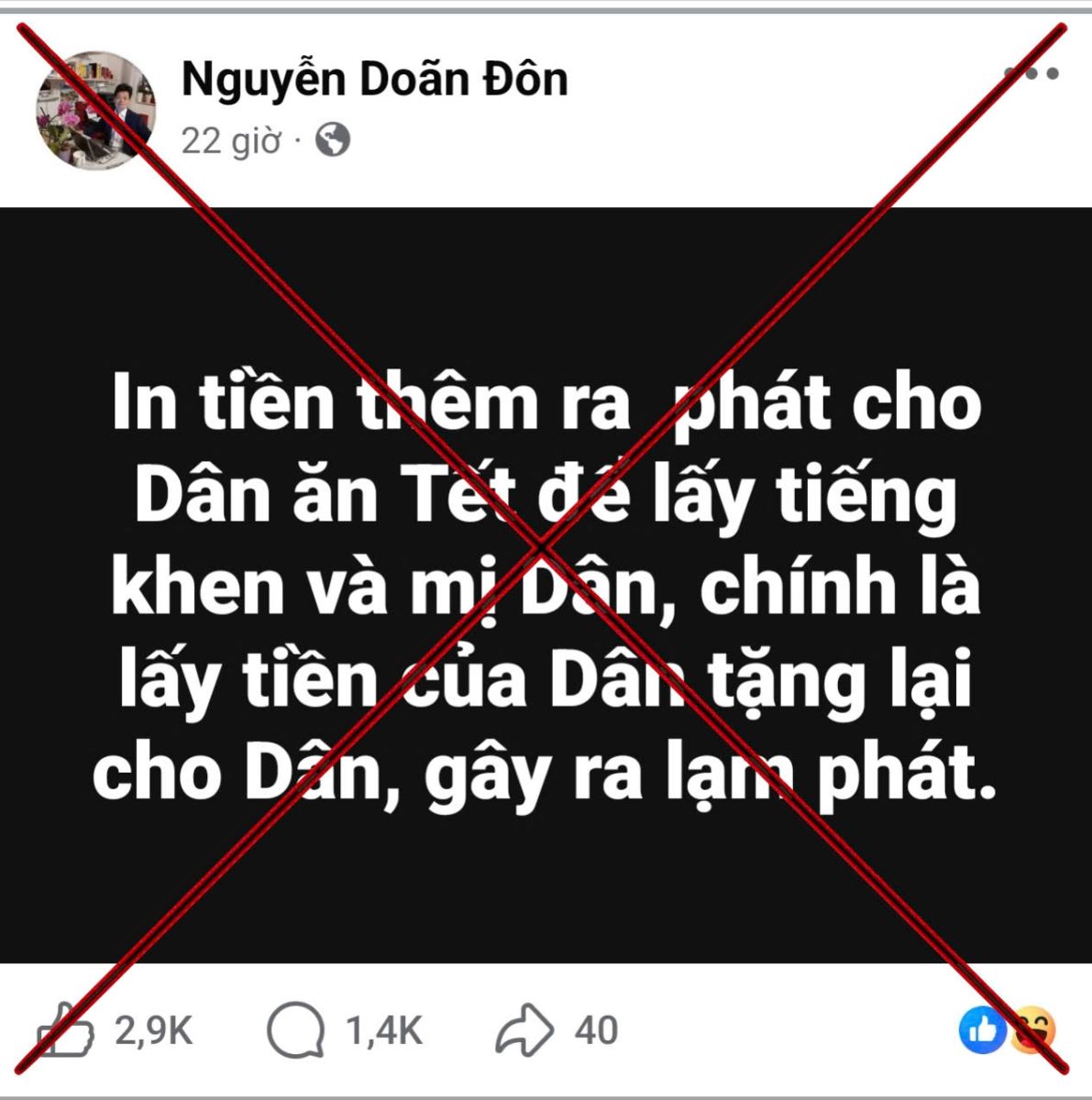 Trong những năm gần đây, đặc biệt vào thời điểm cuối năm và các dịp lễ, Tết cổ truyền của dân tộc, trên không gian mạng thường xuất hiện nhiều thông tin sai sự thật, bóp méo chủ trương, chính sách của Đảng và Nhà nước ta. Một trong những luận điệu được các đối tượng xấu, phản động, cơ hội chính trị cố tình lan truyền trên mạng xã hội là: “In thêm tiền ra phát cho dân ăn Tết để lấy tiếng khen và mị dân, chính là lấy tiền của dân tặng lại cho dân, gây ra lạm phát.” Đây là một nhận định phiến diện, đánh tráo khái niệm, xuyên tạc bản chất, nhằm gây hoang mang dư luận, làm suy giảm niềm tin của Nhân dân đối với sự lãnh đạo của Đảng và Nhà nước.