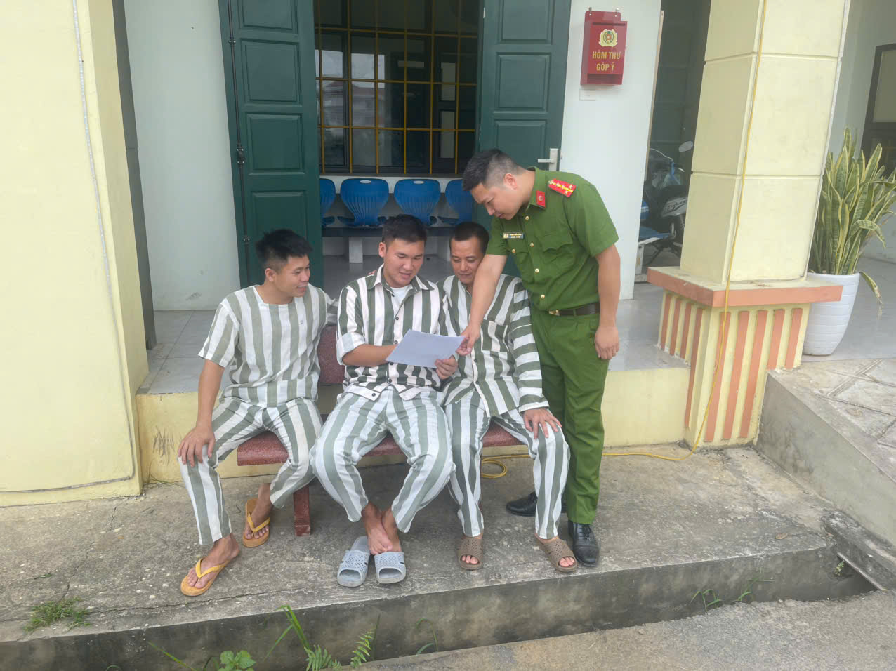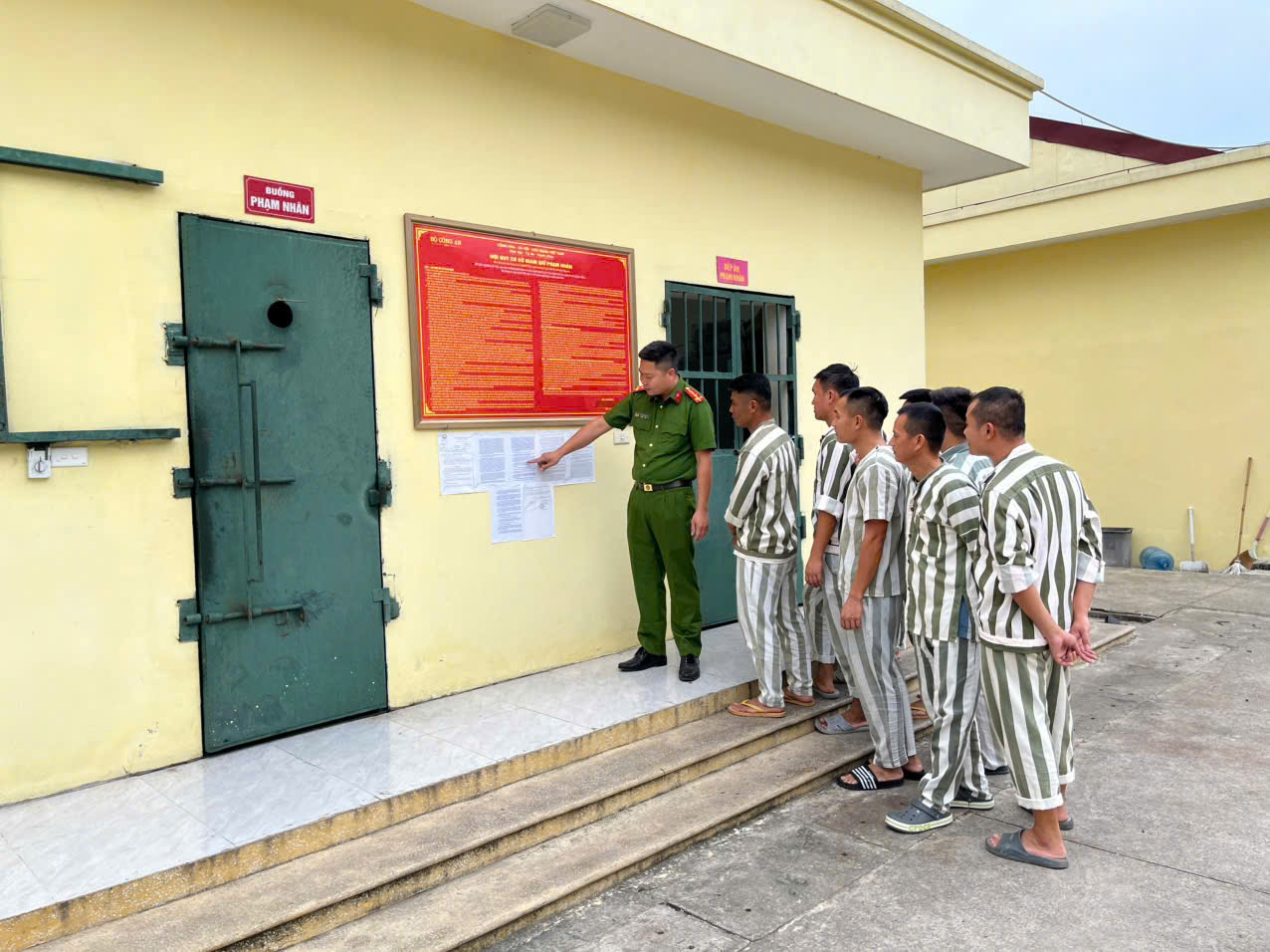 Cán bộ quản giáo Phân trại tạm giam Mỹ Hào tuyên truyền, giáo dục tư tưởng, động viên phạm nhân nỗ lực tu dưỡng, cải tạo tốt để sớm được xét đặc xá.