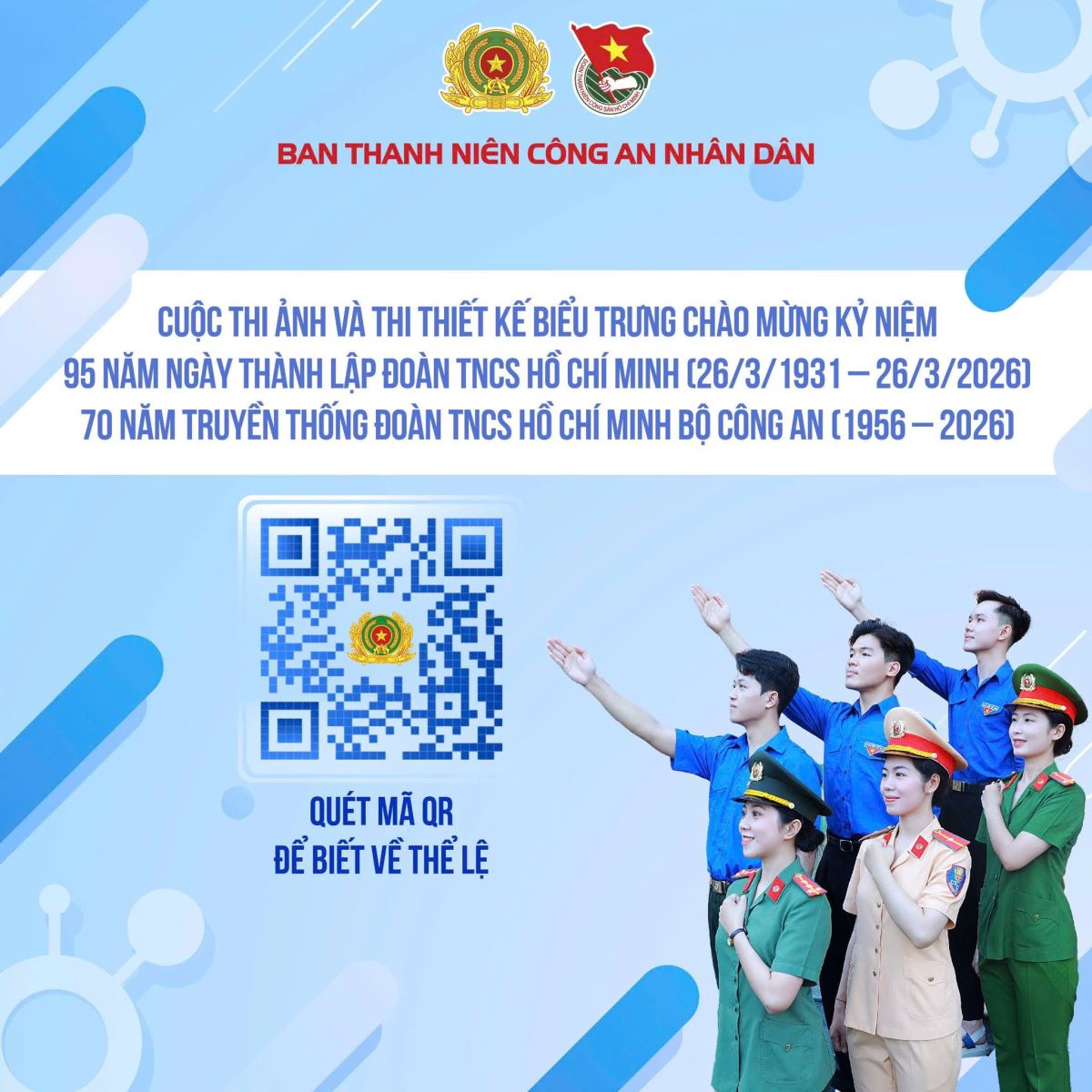 Thực hiện Kế hoạch số 30-KH/BTN ngày 30/01/2026 của Ban Thanh niên Công an nhân dân về việc tổ chức Cuộc thi ảnh và thi thiết kế biểu trưng chào mừng kỷ niệm 95 năm Ngày thành lập Đoàn TNCS Hồ Chí Minh (26/3/1931 - 26/3/2026) và 70 năm truyền thống Đoàn TNCS Hồ Chí Minh Bộ Công an (1956 - 2026), Ban Thanh niên Công an tỉnh đã chủ động xây dựng kế hoạch triển khai, ban hành thể lệ và tổ chức tuyên truyền sâu rộng trong toàn lực lượng.