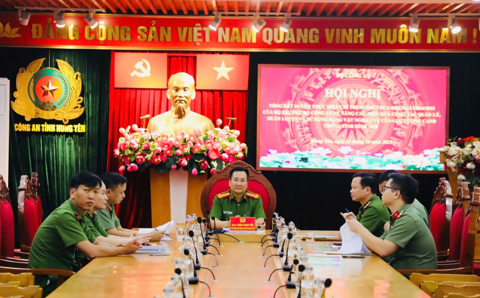 Phát biểu tại Hội nghị, Trung tướng Nguyễn Ngọc Vân- Tư lệnh Bộ tư lệnh Cảnh sát cơ động biểu dương Công an các đơn vị địa phương đã có thành tích tiêu biểu trong công tác quản lý và sử dụng động vật nghiệp vụ. Đồng thời, đề nghị Công an các đơn vị, địa phương tiếp tục nghiên cứu, xây dựng, sửa đổi, bổ sung các văn bản quy phạm pháp luật, các quy định, chỉ thị, hướng dẫn về công tác quản lý, nuôi dưỡng, huấn luyện và sử dụng động vật nghiệp vụ tạo hành lang pháp lý vững chắc để thực hiện công tác nuôi dưỡng, huấn luyện và sử dụng động vật nghiệp vụ được đồng bộ, thống nhất, đáp ứng yêu cầu thực tiễn và yêu cầu hiện đại hóa; trọng tâm là tham mưu xây dựng, ban hành chỉ thị mới thay thế Chỉ thị số 04. Đẩy mạnh công tác đào tạo, bồi dưỡng cán bộ chuyên trách; đầu tư cơ sở vật chất, trang thiết bị hiện đại hội nhập hợp tác quốc tế; tăng cường công tác phối hợp giữa các lực lượng nghiệp vụ, qua đó phát huy tối đa hiệu quả của động vật nghiệp vụ trong công tác bảo vệ an ninh, trật tự, trật tự an toàn xã hội và phòng, chống tội phạm, đáp ứng yêu cầu nhiệm vụ trong tình hình mới.