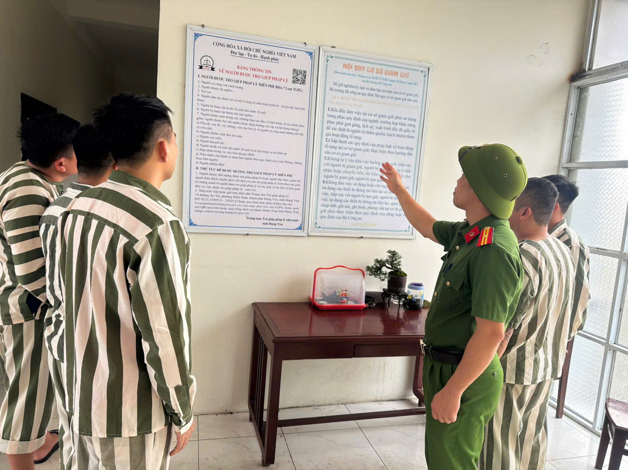 Bên cạnh đó, cán bộ quản giáo luôn duy trì tổ chức “Giờ học pháp luật” định kỳ hằng tuần từ 01 – 02 buổi cho can phạm nhân với nhiều hình thức phong phú như: Tuyên truyền trực tiếp, tổ chức hỏi đáp, thảo luận, tìm hiểu pháp luật, lồng ghép nội dung giáo dục pháp luật trong sinh hoạt thường xuyên. Thông qua các hoạt động này, can phạm nhân được tiếp cận với kiến thức pháp luật một cách trực quan, dễ hiểu, từng bước hình thành ý thức tự giác chấp hành pháp luật, hạn chế vi phạm nội quy, góp phần xây dựng môi trường giam giữ an toàn, ổn định và kỷ cương.