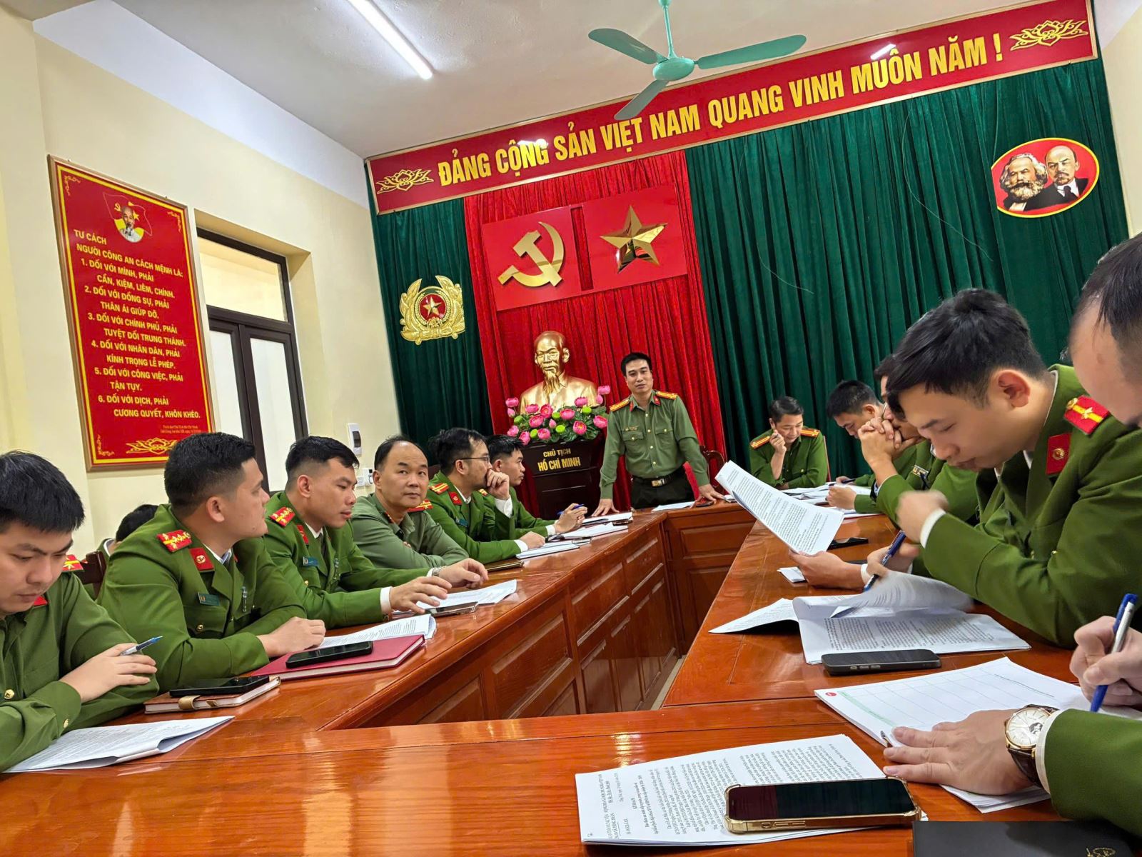 Sáu là, chủ động bảo đảm tài chính, hậu cần, kỹ thuật phục vụ kịp thời, hiệu quả các mặt công tác, chiến đấu. Tăng cường quản lý, sử dụng có hiệu quả các nguồn lực tài chính, hậu cần, kỹ thuật đáp ứng yêu cầu xây dựng lực lượng Công an tỉnh thật sự trong sạch, vững mạnh, chính quy, tinh nhuệ, hiện đại. Kịp thời trang cấp các thiết bị, phương tiện phù hợp với thực tiễn chiến đấu của các hệ lực lượng và 02 cấp Công an; ưu tiên trang bị cho các lực lượng trực tiếp chiến đấu, Công an xã, phường.