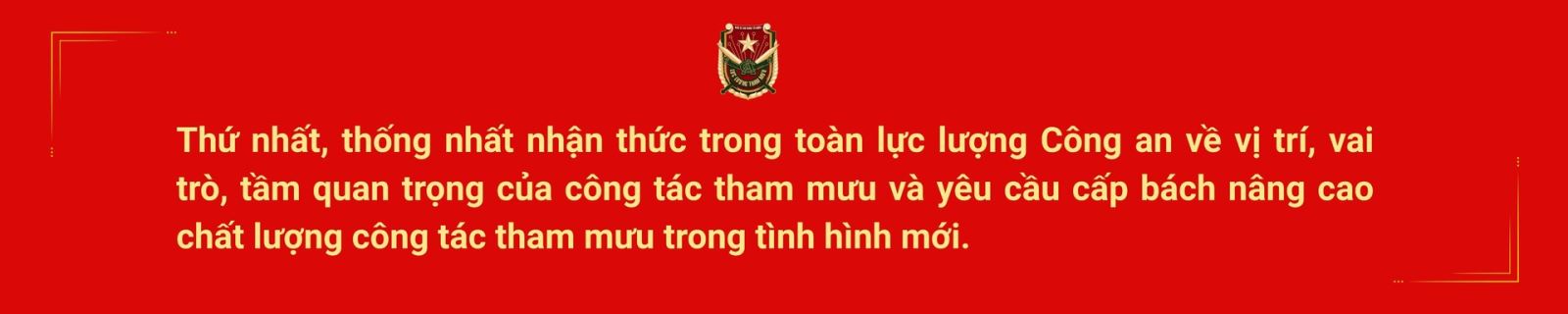 Trong giai đoạn cách mạng mới của đất nước, tham mưu Công an nhân dân không chỉ có vị trí, tầm quan trọng đặc biệt giúp Đảng ủy Công an Trung ương, lãnh đạo Bộ đề xuất với Đảng, Nhà nước những vấn đề chiến lược bảo vệ Tổ quốc, chiến lược bảo vệ an ninh quốc gia, trật tự, an toàn xã hội, những vấn đề liên quan đường lối đối ngoại, đối nội và sự phát triển kinh tế, văn hóa, xã hội của đất nước; đề xuất lãnh đạo Công an các cấp đề ra các chủ trương, kế hoạch, mệnh lệnh công tác và quyết sách trong quá trình chỉ đạo các mặt công tác công an; mà đây là lực lượng chủ công, nòng cốt thúc đẩy tính hành động mạnh mẽ, kỷ luật trách nhiệm, kỷ luật thực thi trong toàn lực lượng Công an nhân dân, đưa các chủ trương đúng đắn của Đảng, chính sách pháp luật của Nhà nước về an ninh, trật tự trở thành kết quả công tác bảo đảm an ninh, trật tự. Do vậy, để tạo ra những dấu ấn mới trên các mặt công tác Công an, trước hết, phải tạo bước đột phá mới nâng cao chất lượng tham mưu của toàn ngành.
