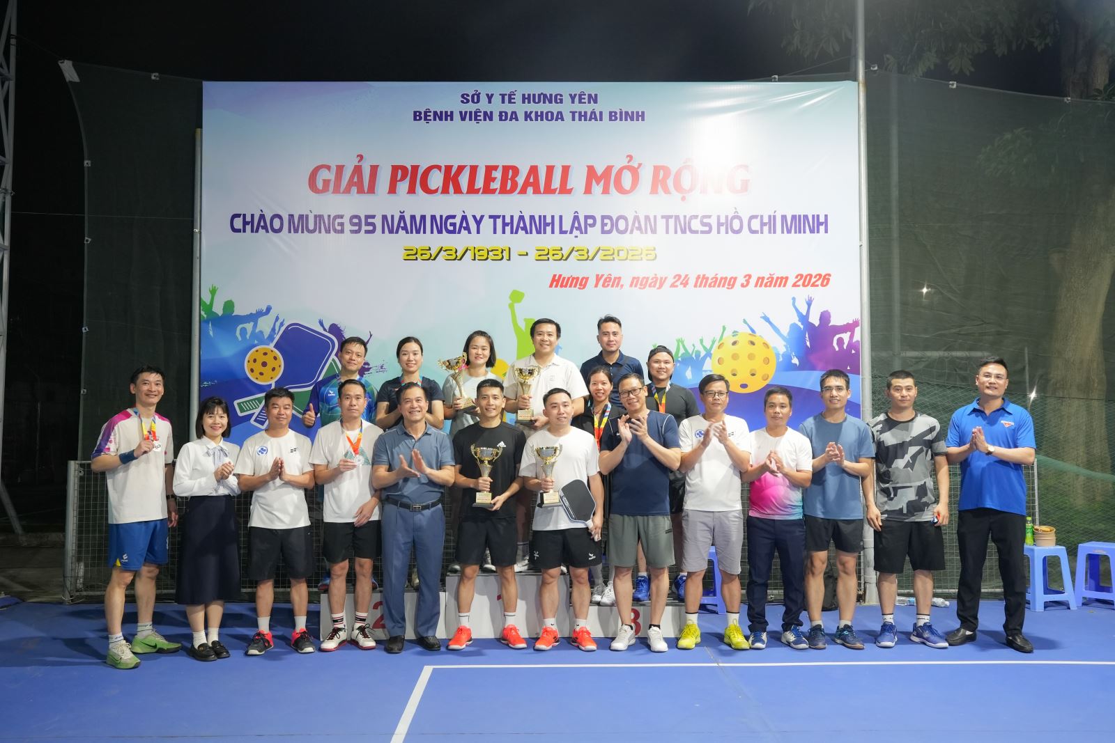 Hướng tới kỷ niệm 95 năm Ngày thành lập Đoàn Thanh niên Cộng sản Hồ Chí Minh, ngày 24/3/2026, tại Bệnh viện Đa khoa Thái Bình, phường Trần Lãm, tỉnh Hưng Yên, Phòng An ninh Chính trị nội bộ đã phối hợp với một số bệnh viện trên địa bàn tỉnh Hưng Yên tổ chức giải giao lưu Pickleball.