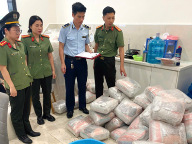 Phòng An ninh kinh tế phối hợp Chi cục Quản lý thị trường tiến hành kiểm tra, thu giữ sản phẩm tại cơ sở kinh doanh sản xuất hàng giả