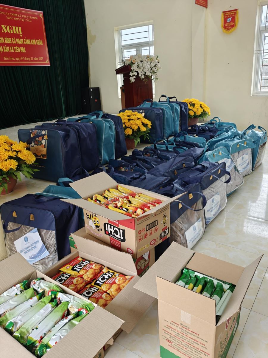 Chiều ngày 07/11/2025, tại hội trường UBND xã Tiên Hoa, Phòng An ninh kinh tế Công an tỉnh Hưng Yên phối hợp với Công ty TNHH Kỹ thuật bao bì Ming Shin Việt Nam (chi nhánh xã Tiên Hoa) tổ chức Chương trình “Trao tặng quà tới các hộ gia đình có hoàn cảnh khó khăn trên địa bàn xã Tiên Hoa”.