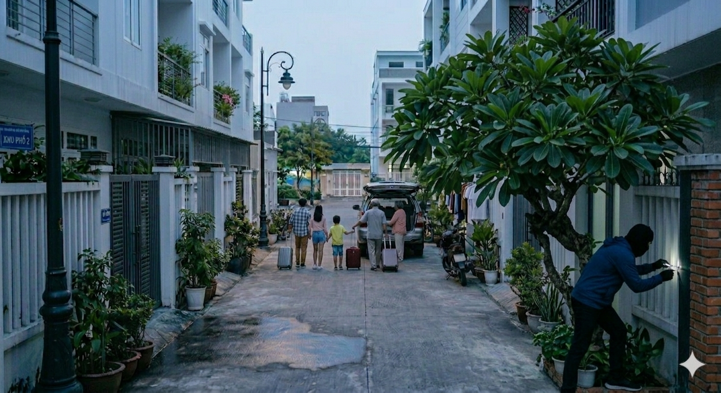 (3) Nhờ người thân, hàng xóm trông coi: Khi vắng nhà dài ngày, nên chủ động nhờ người thân, hàng xóm tin cậy qua lại kiểm tra, dọn dẹp, bật tắt điện vào buổi tối để tạo cảm giác ngôi nhà vẫn có người sinh hoạt bình thường. Đây là biện pháp đơn giản nhưng hiệu quả, khiến các đối tượng khó xác định chính xác tình trạng vắng người. Ngoài ra, có thể gửi chìa khóa dự phòng cho người đáng tin cậy để xử lý kịp thời khi phát sinh sự cố.