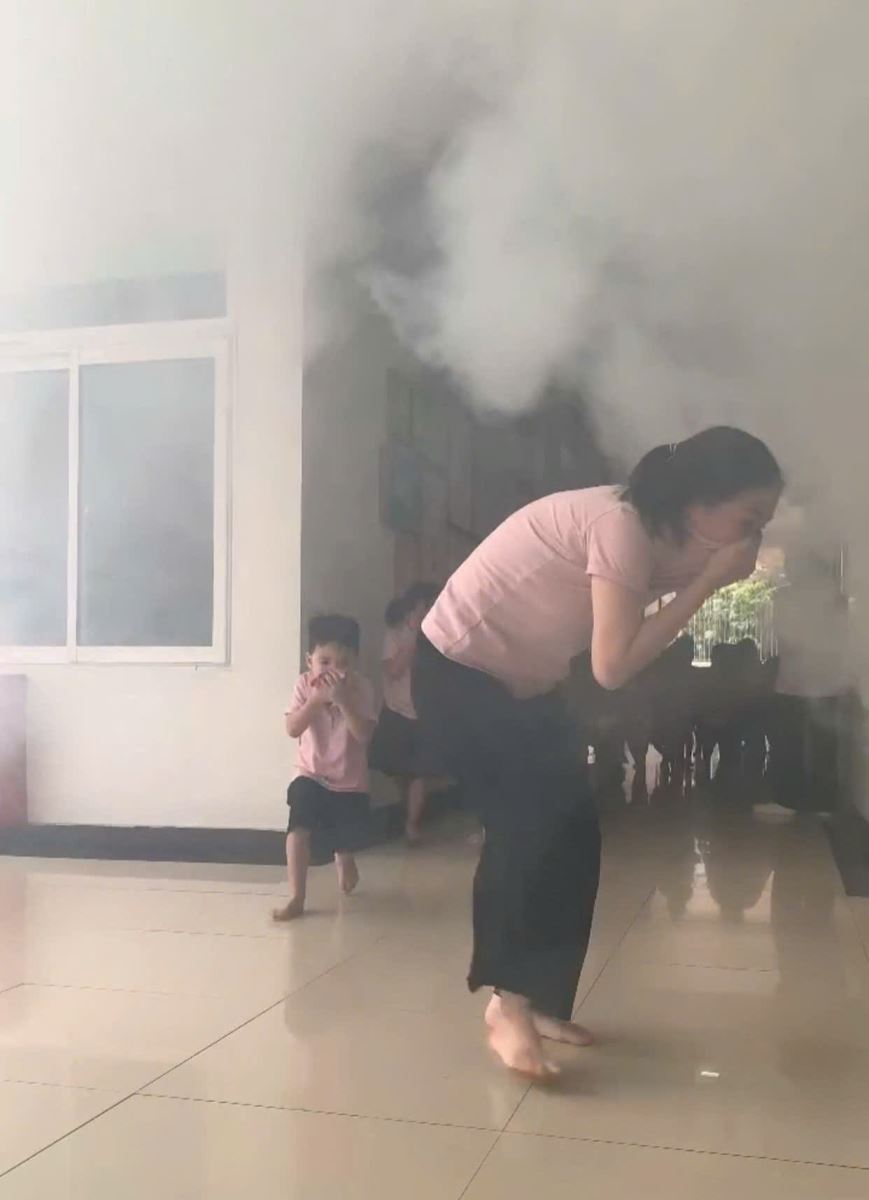 Giáo viên và học sinh thực hành thoát nạn trong điều kiện có khói, khí độc