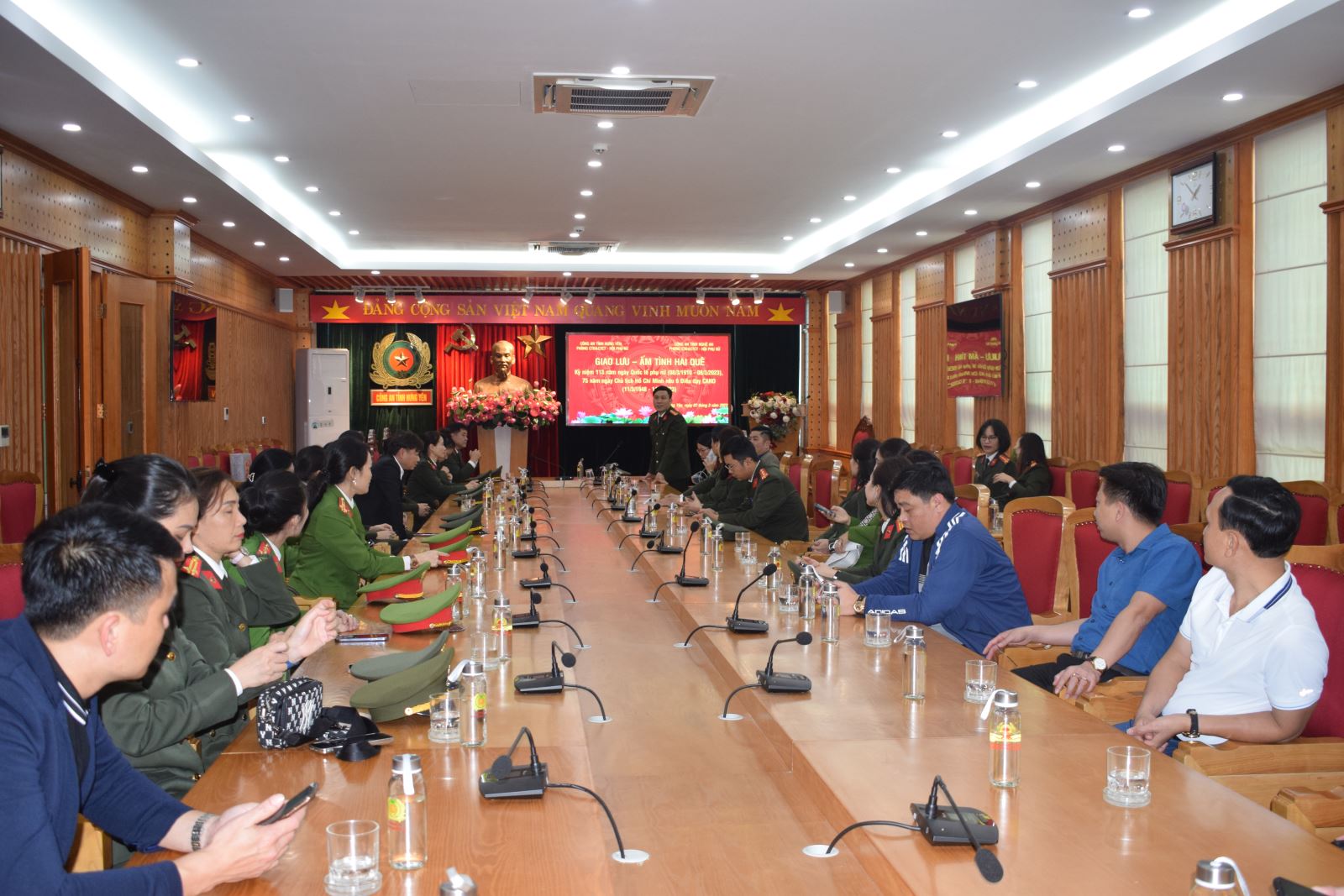 Tại buổi giao lưu, hai đơn vị đã cùng nhau trao đổi những thuận lợi và khó khăn, cũng như những cách làm hay, sáng tạo trong thực hiện các mặt công tác chuyên môn. Đồng thời chia sẻ nhiều kinh nghiệm, bài học bổ ích; giới thiệu những mô hình, công trình, phần việc có ý nghĩa thiết thực, hoạt động hiệu quả trong thời gian qua tại Công an hai tỉnh, góp phần xây dựng hình ảnh người chiến sỹ Công an nhân dân “vì nước quên thân, vì dân phục vụ”.