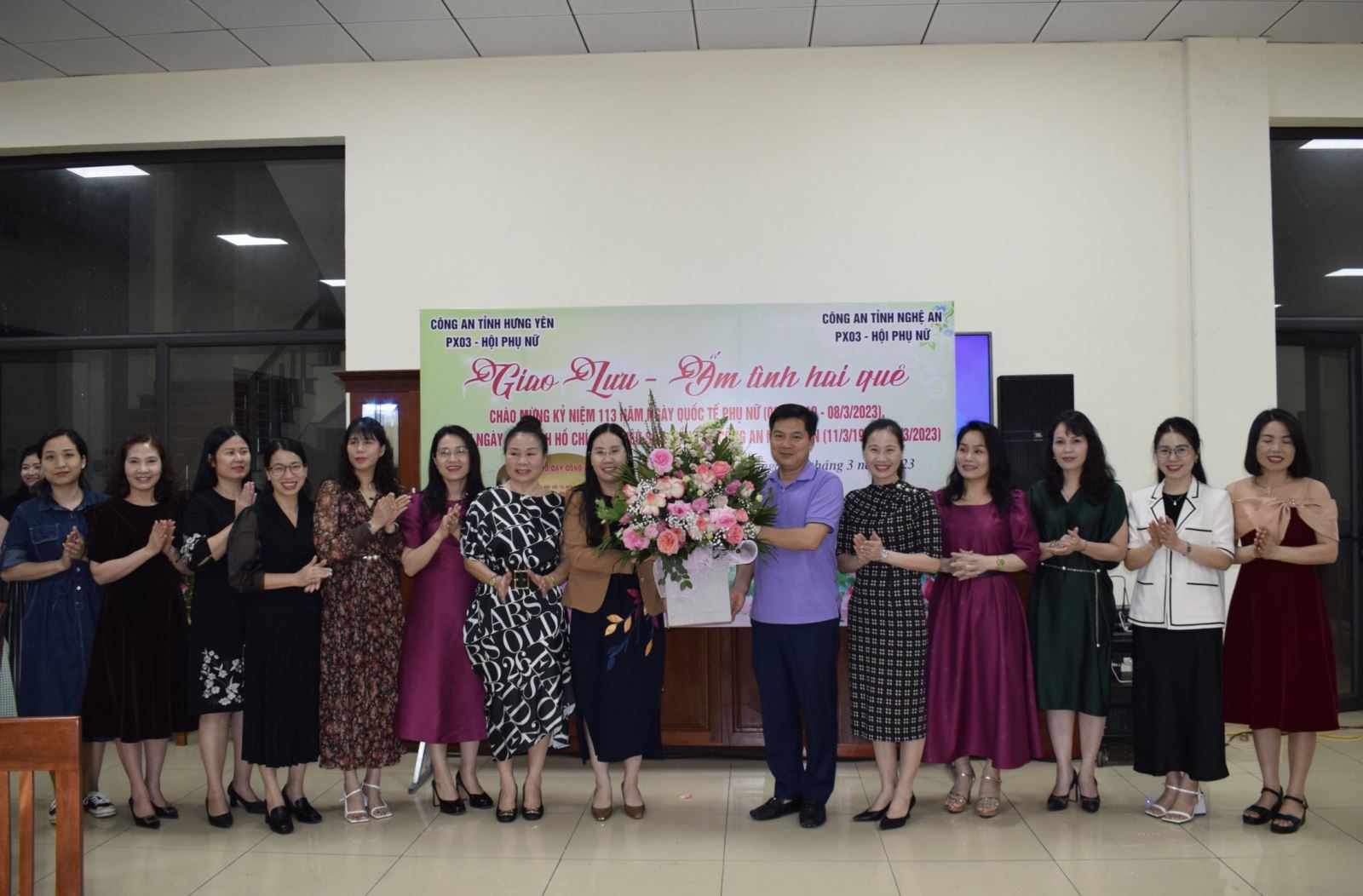 Thay mặt tập thể lãnh đạo và cán bộ chiến sỹ đơn vị, đồng chí Trưởng phòng công tác Đảng và công tác chính trị Công an tỉnh Hưng Yên đã bày tỏ sự trân trọng trước tình cảm của đoàn công tác dành cho đơn vị và Hội phụ nữ Công an tỉnh Hưng Yên, đồng thời gửi những lời chúc tốt đẹp nhất đến các thành viên trong đoàn, đặc biệt là các đồng chí cán bộ, hội viên Hội phụ nữ Công an tỉnh Nghệ An nhân dịp kỷ niệm 113 năm Ngày Quốc tế phụ nữ 8/3.